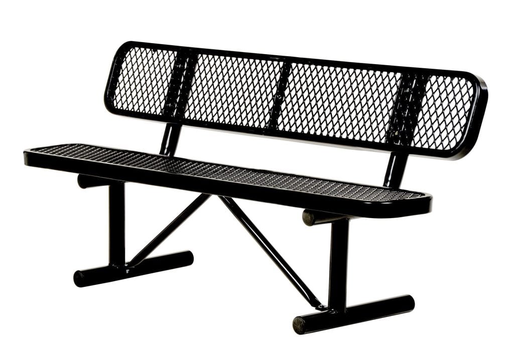 Built to last and highly attractive, this commercial grade Bench is constructed of expanded metal that features a diamond pattern. Finished to endure the elements with virtually no maintenance. The Seat is coated with a rugged thermoplastic layer that’s attractive and durable. Galvanized tubular steel legs and supports are protected with a black powder coat finish designed for strength and stability.