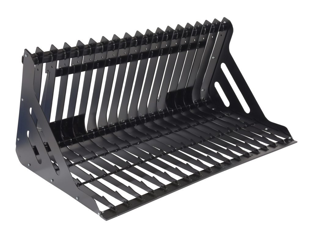 A skid steer rock grader bucket works wonders in the landscaping and construction industries. With a low profile design, along with an immense structural volume, it makes loading and unloading heavy rocks as easy as ever. With a simple attachment, connecting to an existing skid steer is as quick as can be. Once in place, the bar style bottom platform is ready to transport heavy loads and minimize manual labor.