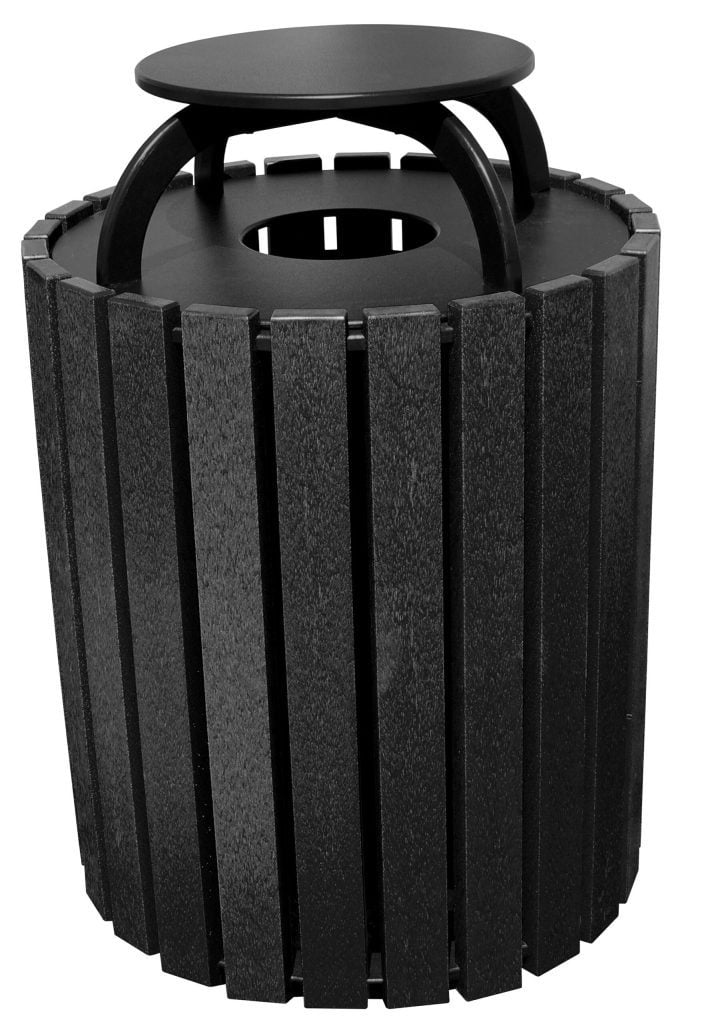 The large capacity 49 gallon receptacle can be used for trash or as part of a recycling station. Made in America of 100% post-consumer recycled plastic, it include an inner plastic liner and is available in seven (7) colors with a black top. Stainless steel fasteners ensure a rust resistance long life, and are internal to provide a clean, blemish-fee appearance. Keep your environment clean and keep plastic out of the landfill at the same time. Rain caps available. We’ve added flare to utility with our Round Flare Top Receptacle! The unique deign has an inner liner and 33 gallon capacity, and is made in America of 100% post-consumer recycled plastic. It’s eco-friendly while helping keep trash/recyclables in their place.