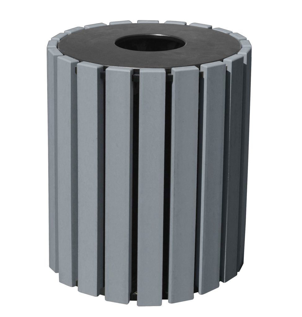 The large capacity 33 gallon receptacle can be used for trash or as part of a recycling station. Made in America of 100% post-consumer recycled plastic, it include an inner plastic liner and is available in seven (7) colors with a black top. Stainless steel fasteners ensure a rust resistance long life, and are internal to provide a clean, blemish-fee appearance. Keep your environment clean and keep plastic out of the landfill at the same time. Rain caps available. We’ve added flare to utility with our Round Flare Top Receptacle! The unique deign has an inner liner and 33 gallon capacity, and is made in America of 100% post-consumer recycled plastic. It’s eco-friendly while helping keep trash/recyclables in their place.