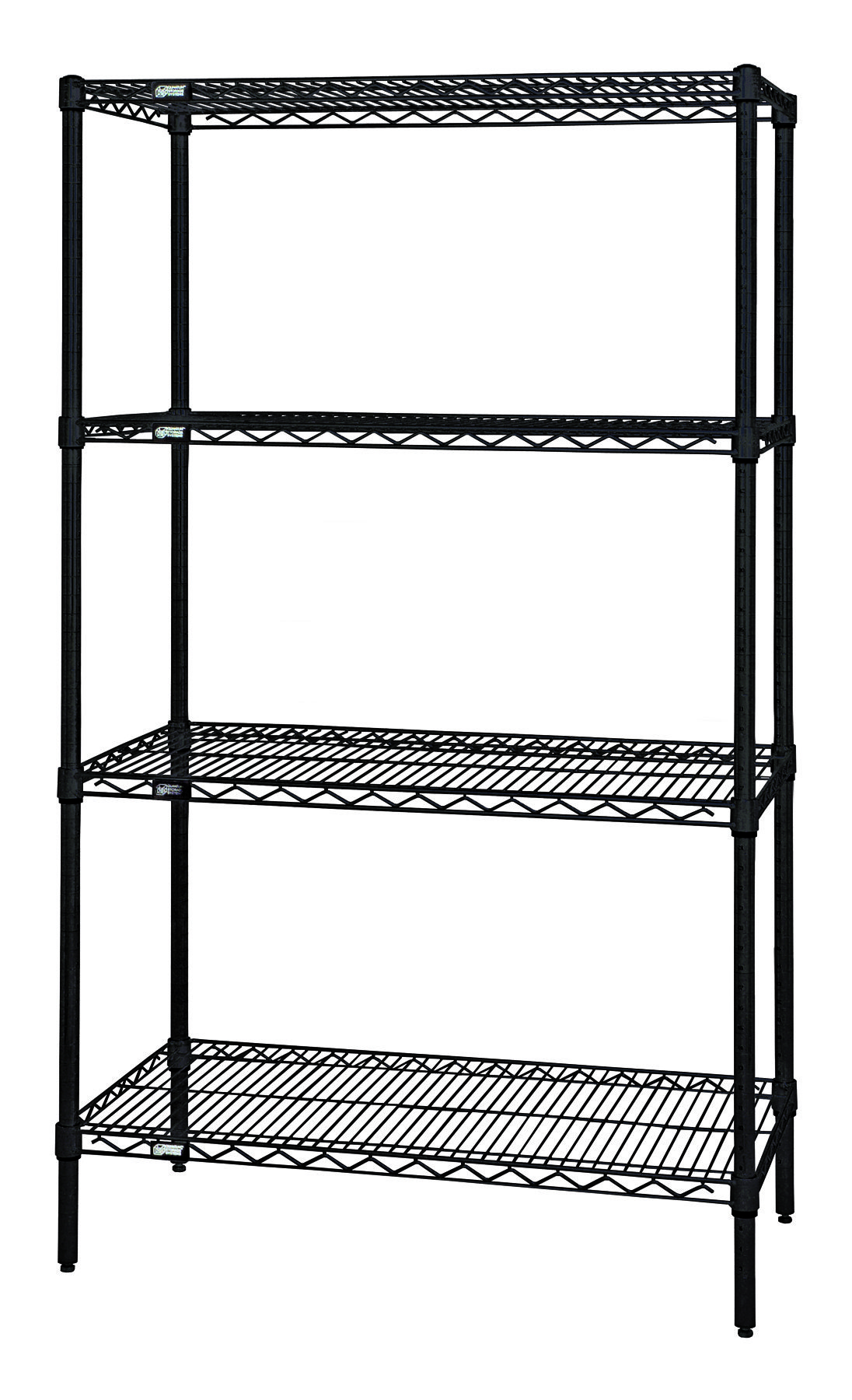 Wire Shelving Starter Kit, 72″W x 36″D x 63″H, 600 – 800 lb. capacity, includes (4) wire shelves and (4) posts, black epoxy antimicrobial finish, NSF, shipped KD