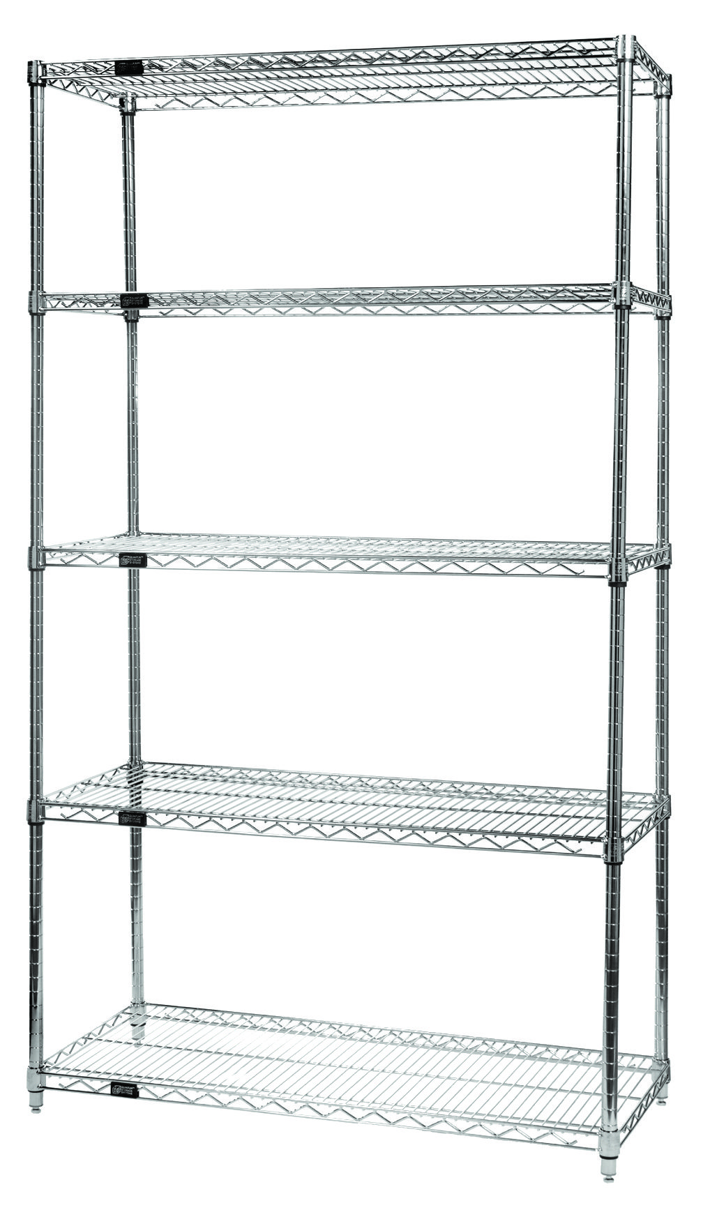 Wire Shelving Starter Kit, 72″W x 36″D x 63″H, 600 – 800 lb. capacity, includes (5) wire shelves and (4) posts, chrome plated finish, NSF, shipped KD