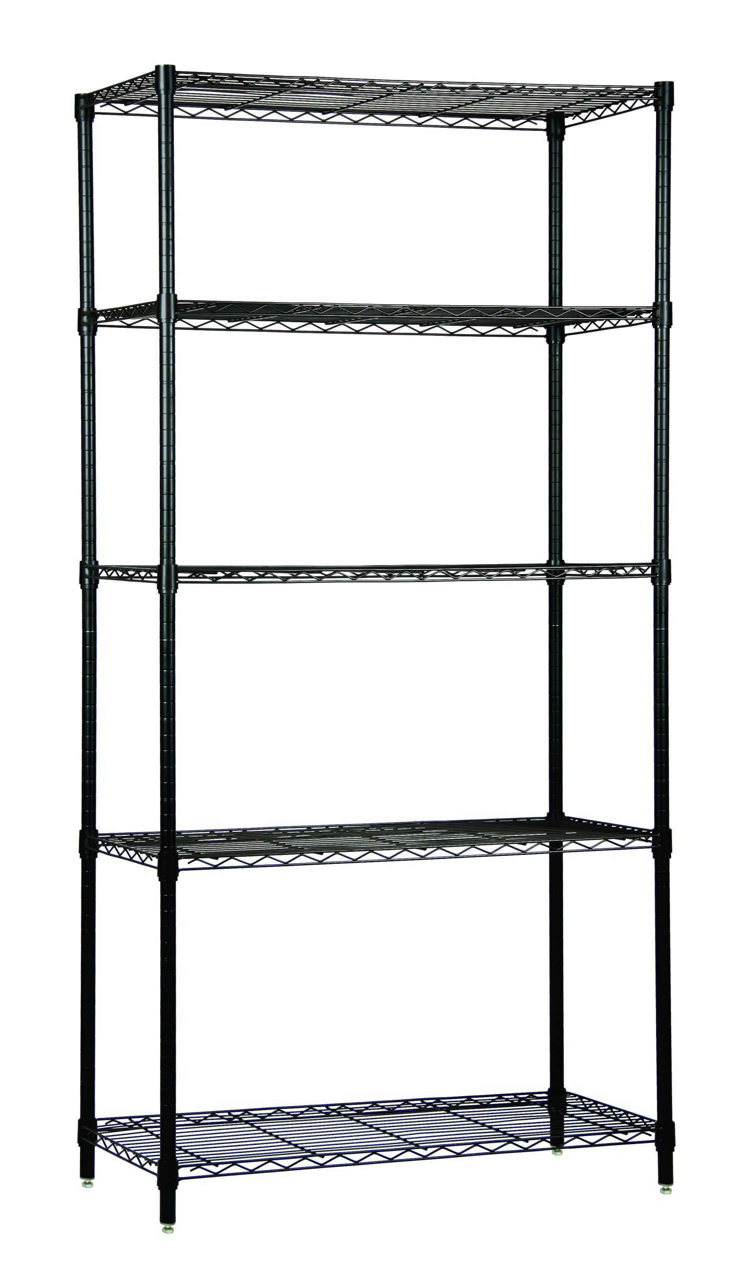 Wire Shelving Starter Kit, 72″W x 36″D x 86″H, 600 – 800 lb. capacity, includes (5) wire shelves and (4) posts, black epoxy antimicrobial finish, NSF, shipped KD