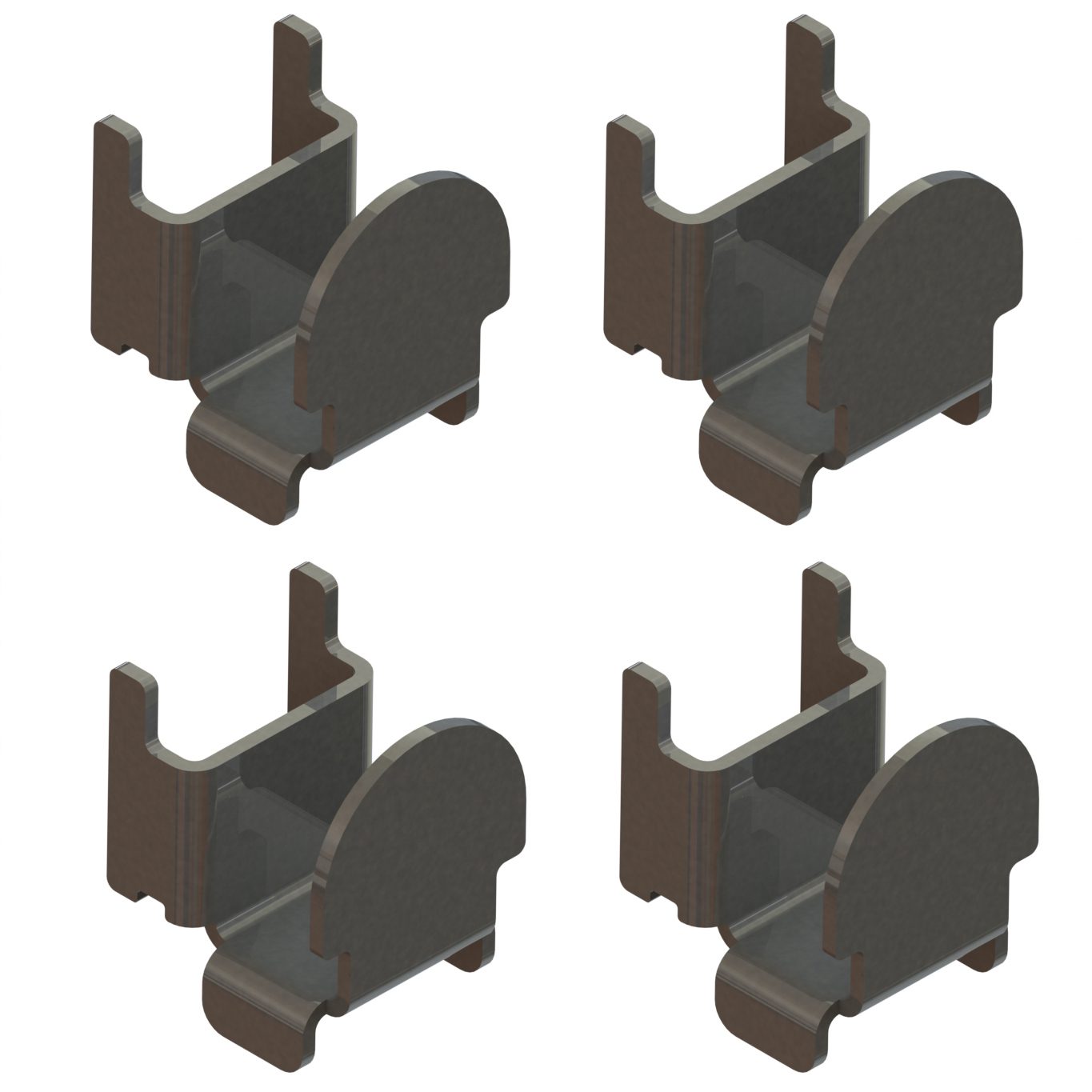 A 2x2 grid of dark gray Metro SMS SmartLever Replacement Shelf Mount Hooks (bag of 4) is shown on a white background. Each C-shaped bracket has a slightly rounded top with two prongs extending from each edge, forming a U-shape.