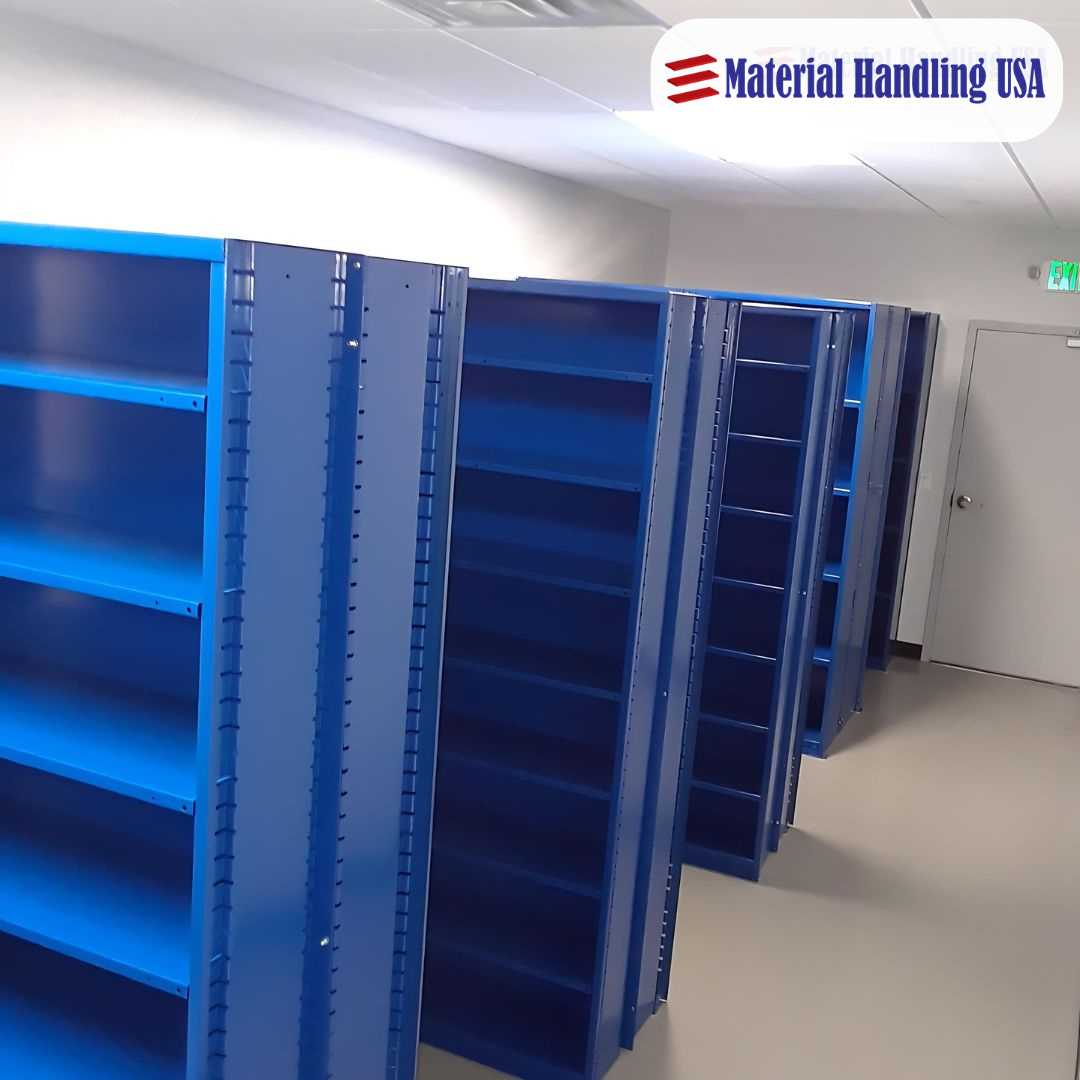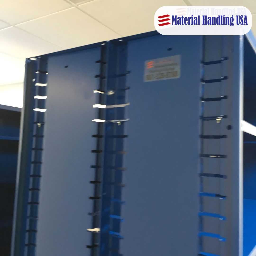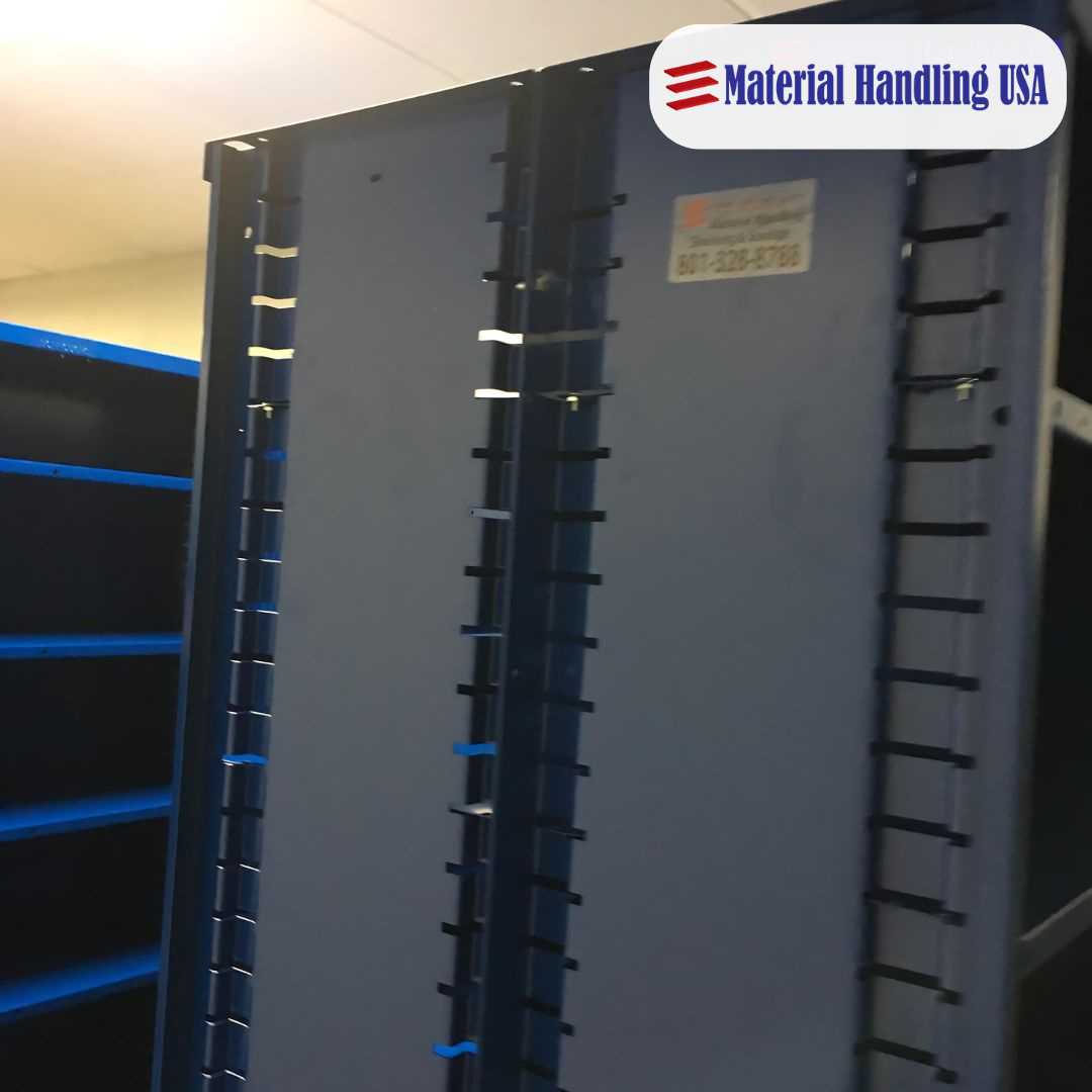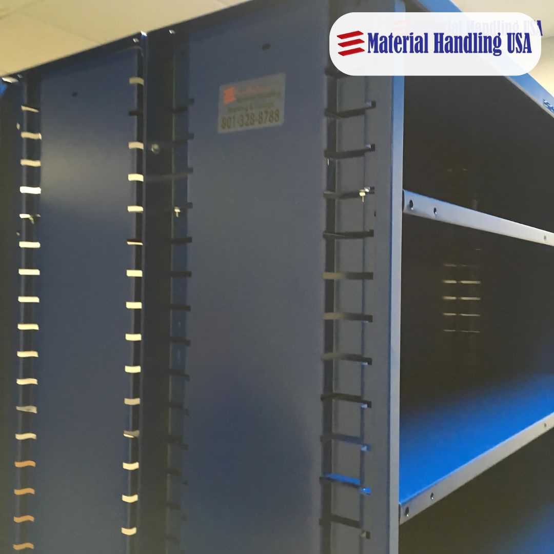 Options include shelving, drawer systems, cabinets, bins, and racks specifically designed to hold various parts securely and neatly.