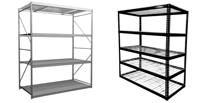 Bulk rack shelving is stronger than rivet shelving and lighter than pallet racking, making it ideal for large, heavy items without the need for a pallet.