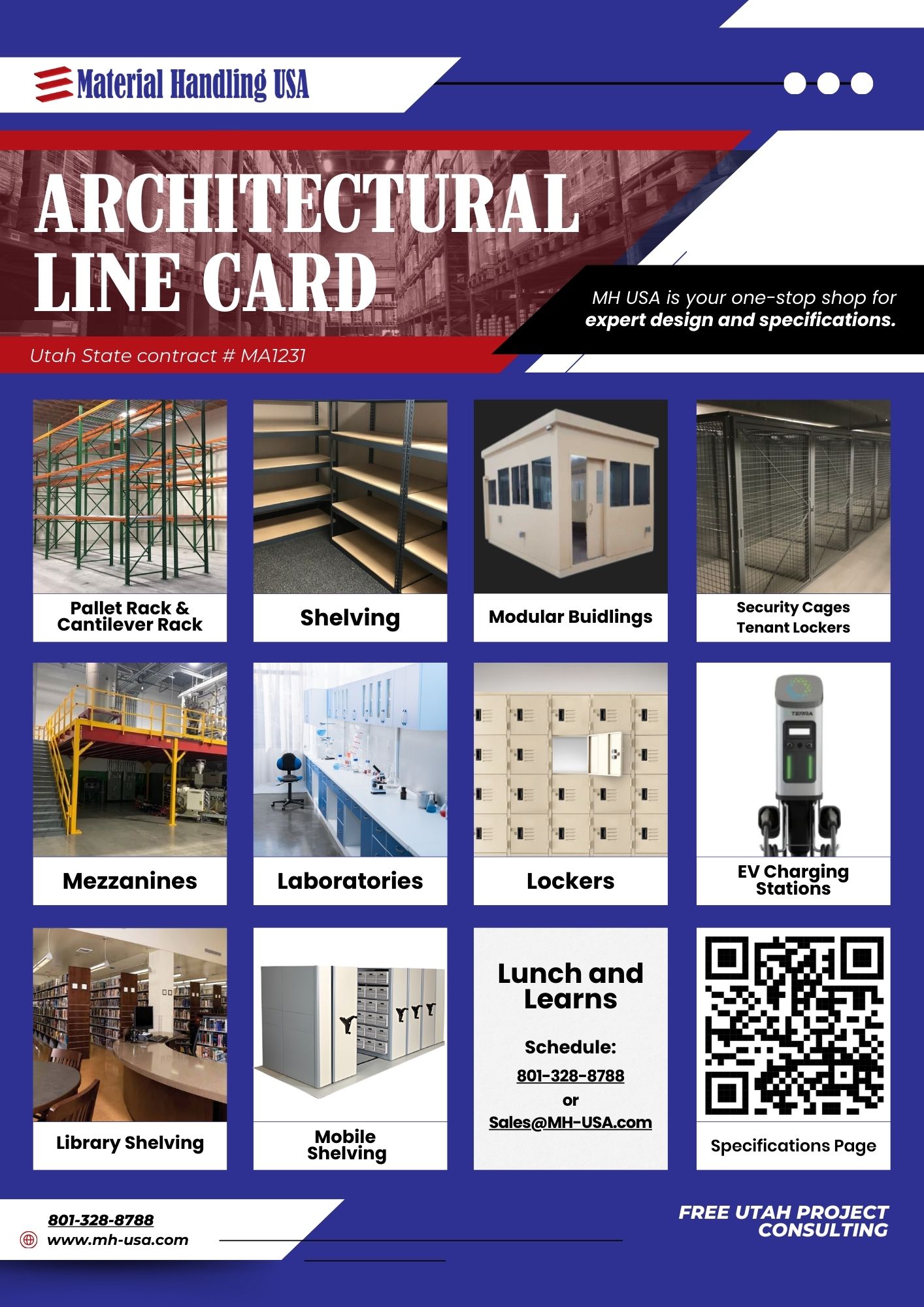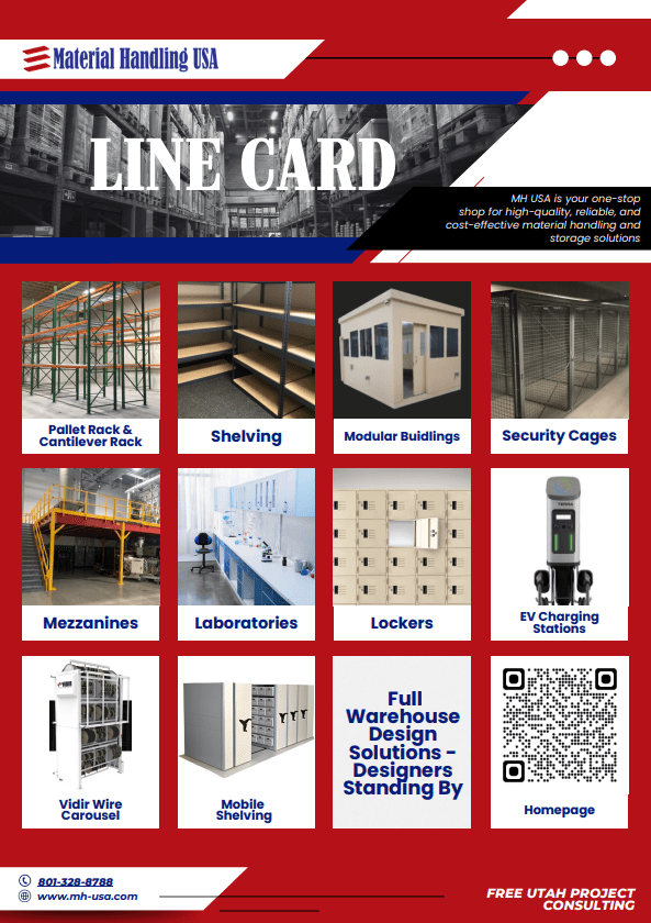 Material Handling USA offers a wide range of products and services including shelving, material handling equipment, packaging and shipping supplies, portable buildings, office equipment, ladders, industrial equipment, and hospital supplies. We also provide design services including measurement, drawings, and specifications to ensure the right fit for your needs.