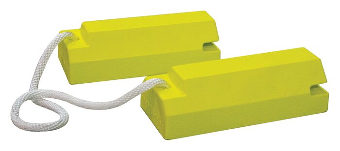 WHEEL CHOCK, AVIATION, 14″ X 6″ X 4″, MID TO LARGE AIRCRAFT, LOCKING ROPE, ROPED PAIR, YELLOW