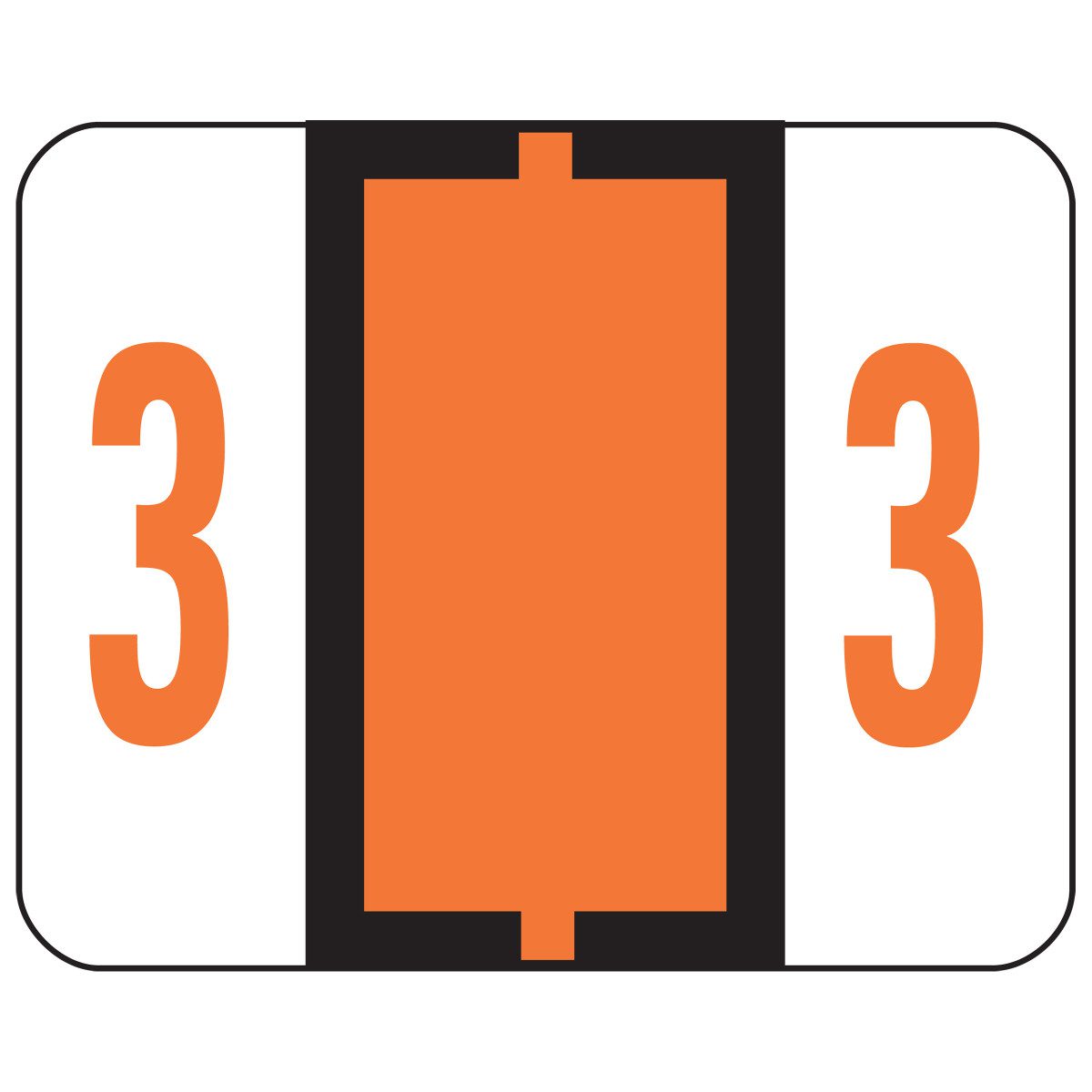 Smead BCCRN Bar-Style Color-Coded Numeric Label, 3, Label Roll, Dark Orange, 500 labels per Roll (67373)
