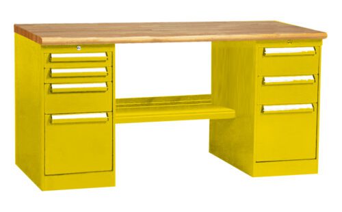 Equiptoflex Workcenter w/ 2 cabinets — Equiptoflex Workcenter-30″D x 5’W x 30″H w/ Hardwood top, Left cabinet consists of 2-3″H, 1-6″H and 1-12″h drawers, Right cabinet consists of 2-6″H and 1-12″H drawers. Each 12″H is a file drawer w/1 sliding divider and 3″ and 6″ drawers each include 1 full width divider. Cabinets include locks. Includes 1 lower 10-1/2″D x 27″W shelf. Cabinets include levelling feet.This is the most flexible technical Workcenter available. Designed ergonomically for the 21st century, it changes with you. Add additional accessories like aerial shelves with or without electric, with or without tackboard. Add on overhead cabinets, a monitor riser, or a keyboard tray
