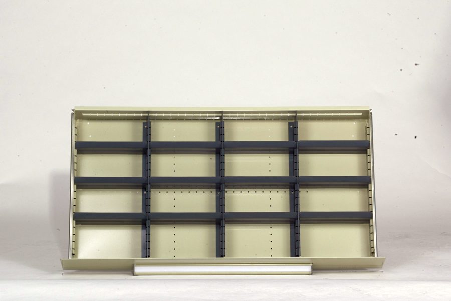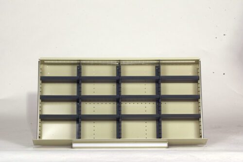 Divider Kit — V Grip Drawer Divider Kits – when selecting divider kits select the proper kit based on drawer height, depth of divider kit you desire, and drawer width (36″ or 48″) – each configuration of dividers has a letter attached to its specific designMod Drawers Divider Set For Drawer height: 6″ and up; 36″ wide; 18″ deep