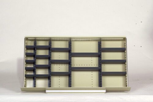 Divider Kit — V Grip Drawer Divider Kits – when selecting divider kits select the proper kit based on drawer height, depth of divider kit you desire, and drawer width (36″ or 48″) – each configuration of dividers has a letter attached to its specific designMod Drawers Divider Set For Drawer height: 4 1/2″ high; 36″ wide; 18″ deep