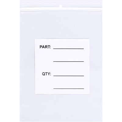 Part numbers and quantities are easily identified on these white block bags. Pre-printed bags identify where to print part number and quantity to insure consistent labeling.