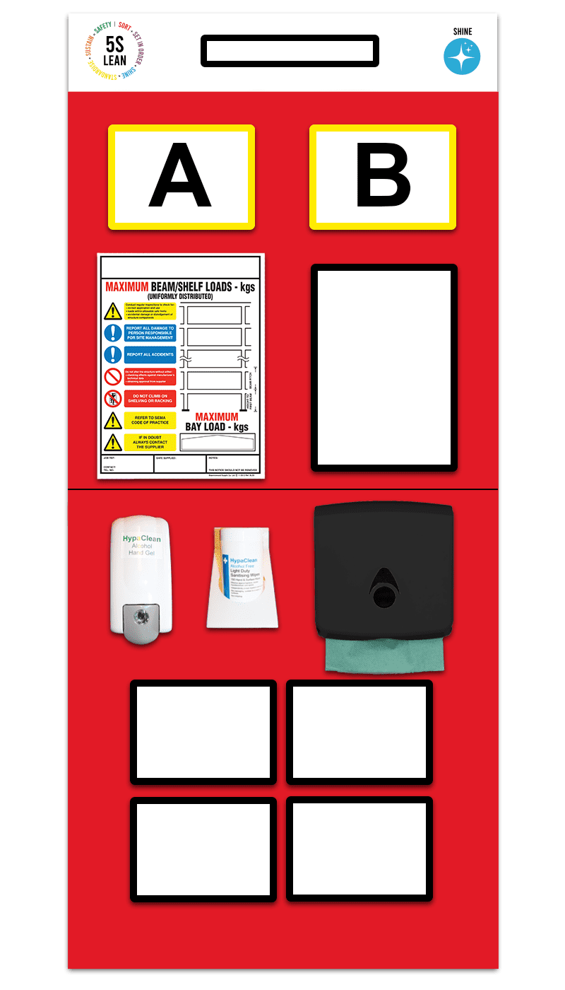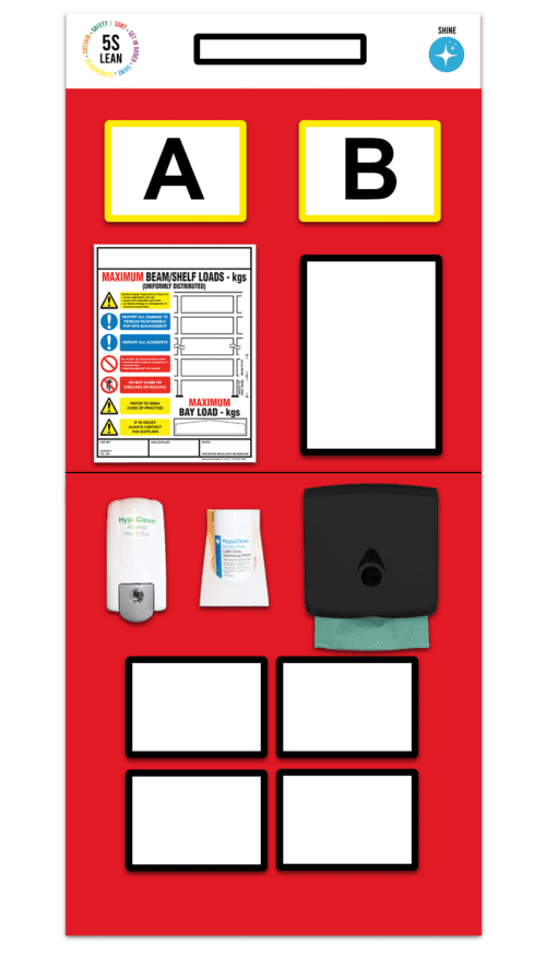 Our Modulean rack end boards offer an all in one solution to aid warehouse navigation but also a 5S compliant system. Choose from a range of standard designs supplied with all fixings and products on display or contact us to create your own unique system if required. The baords are supplied with Frames to include your aisle marker number or letter – when ordering please confirm your requirements, otherewize a blank frame will be supplied for you to insert your own printed A4 paper.