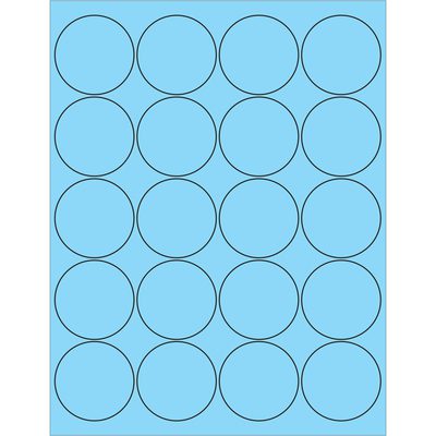MH-USA 2″ Fluorescent Pastel Blue Circle Laser Labels – 20 Labels/Sheet (100 Sheets/Box)