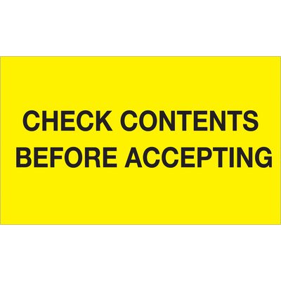 MH-USA 3 x 5″ – “Check Contents Before Accepting” (Fluorescent Yellow) Labels (500/Roll)