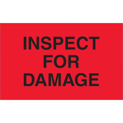 MH-USA 1 1/4 x 2" - "Inspect For Damage" (Fluorescent Red) Labels (500/Roll)