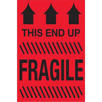 MH-USA 2 x 3″ – “This End Up – Fragile” (Fluorescent Red) Labels (500/Roll)