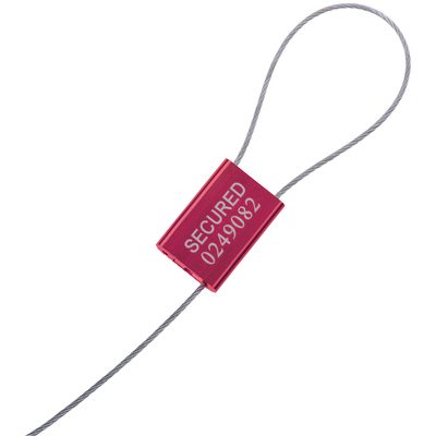 Strong, galvanized steel cable provides durability and strength. Embossed with sequential numbering and the word “Secured”.