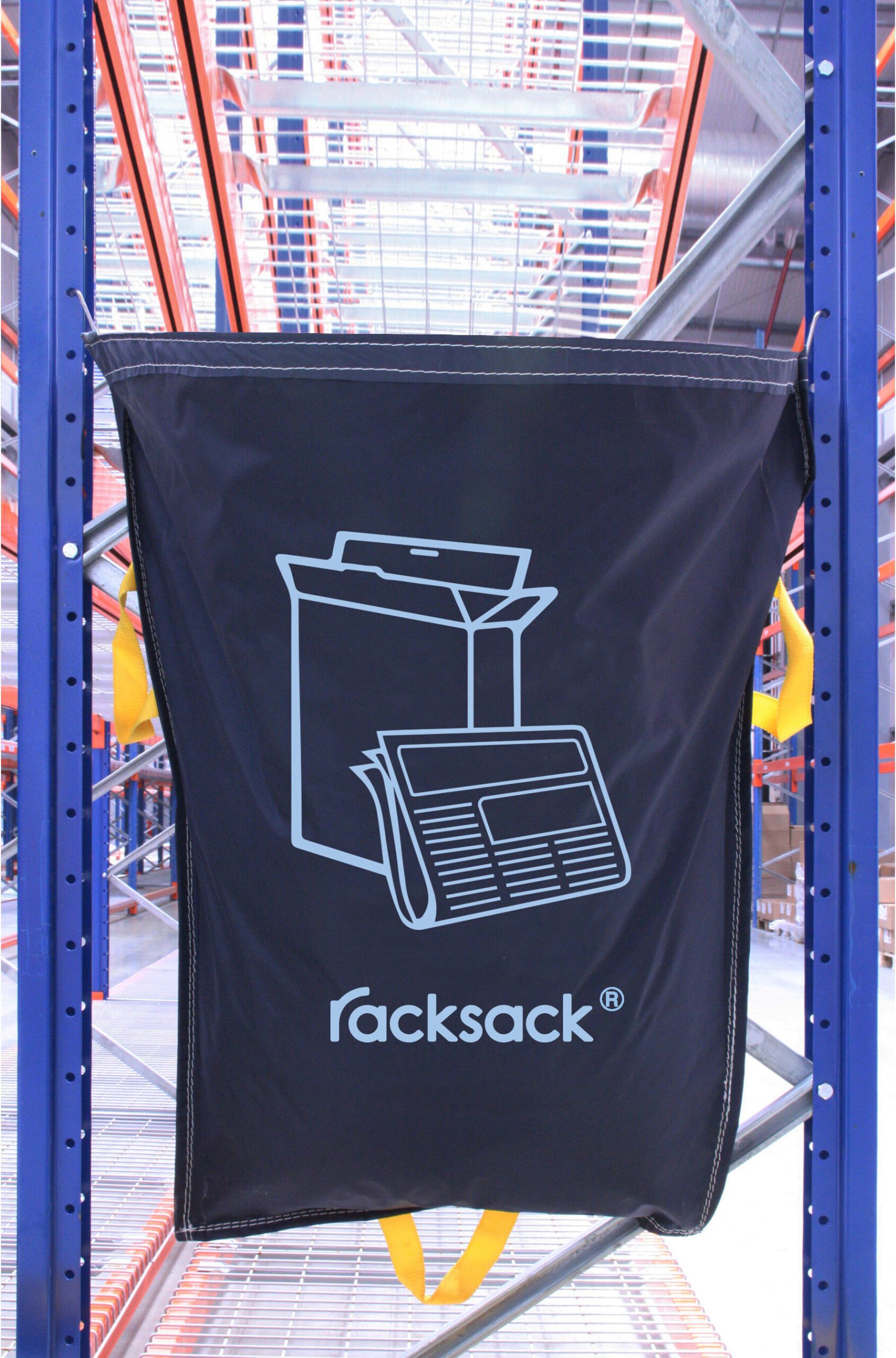Waste management problems are easily solved with the racksack. Ideal for most warehouse racking systems, the racksack quickly fixes to the end of your racking frame. The racksack is designed for most racking and shelving systems between 35.43 in. and 43.31 in.. Once full, racksacks can be removed and emptied with ease. The racksack has been thoughtfully developed so that it will not intrude into valuable warehouse space. When hung it has a large open mouth to easily receive waste, yet its tapered design enables it to hardly encroach into the floor area. Originally designed for the warehouse the racksack’s flexible method of ‘S’ locator fixing means it can be hung over or hooked onto any substrate. That’s why the racksack has quickly established itself a place in other industrial areas such as factories, offices or anywhere where waste has become a problem. Made from tough waterproof polyester the racksack can adequately withstand the rigours of an industrial environment. Three strong handles are woven into the edge of the sack, one on each side for carrying and one on the base, so that