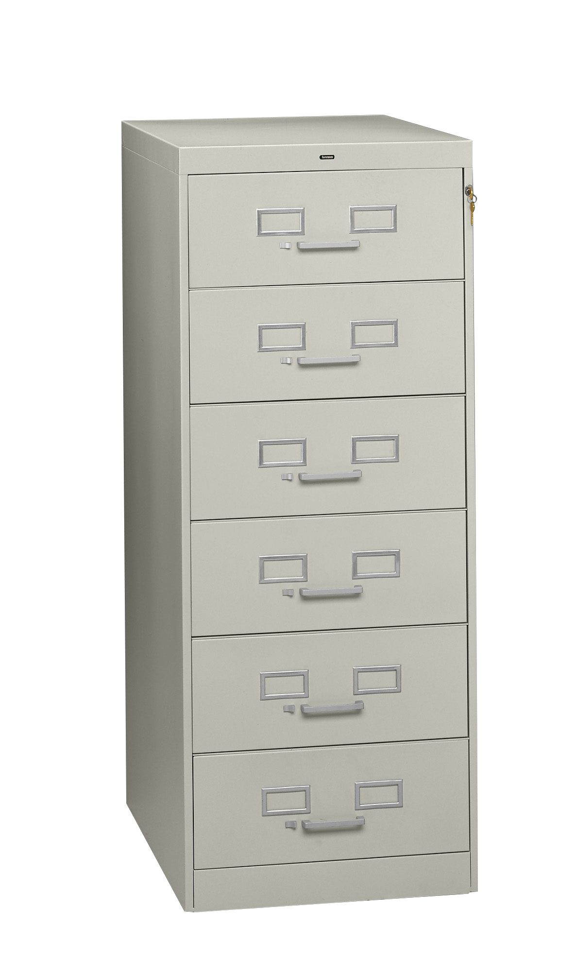 Tennsco 52″ High Card File with Six Drawers, Light Grey