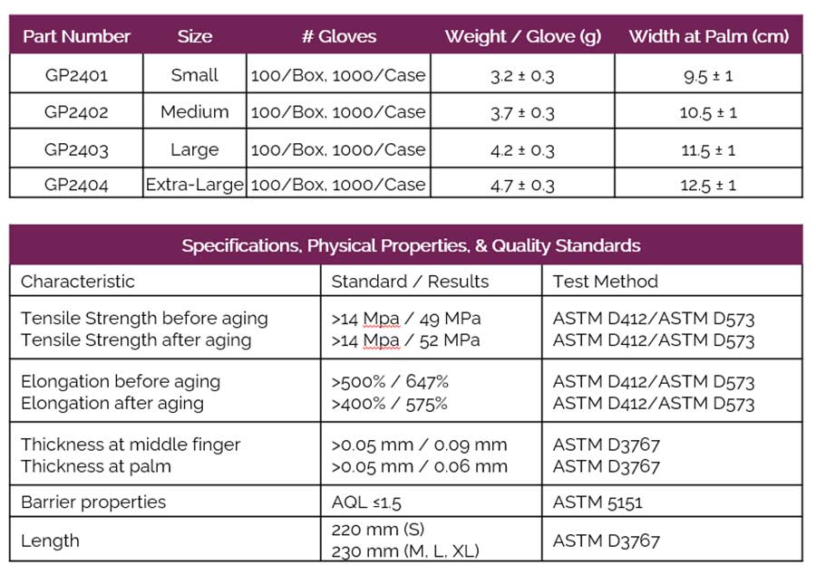 Medical Exam Grade classification in accordance with ASTM testing criteria ensures the gloves perform consistently and to the highest accepted standards to protect the hands of the users and the people on the other side. Our gloves exhibit a similar feel, flexibility and tactile sensitivity as latex gloves, but contain no natural rubber latex so they are safe for people with latex allergies.