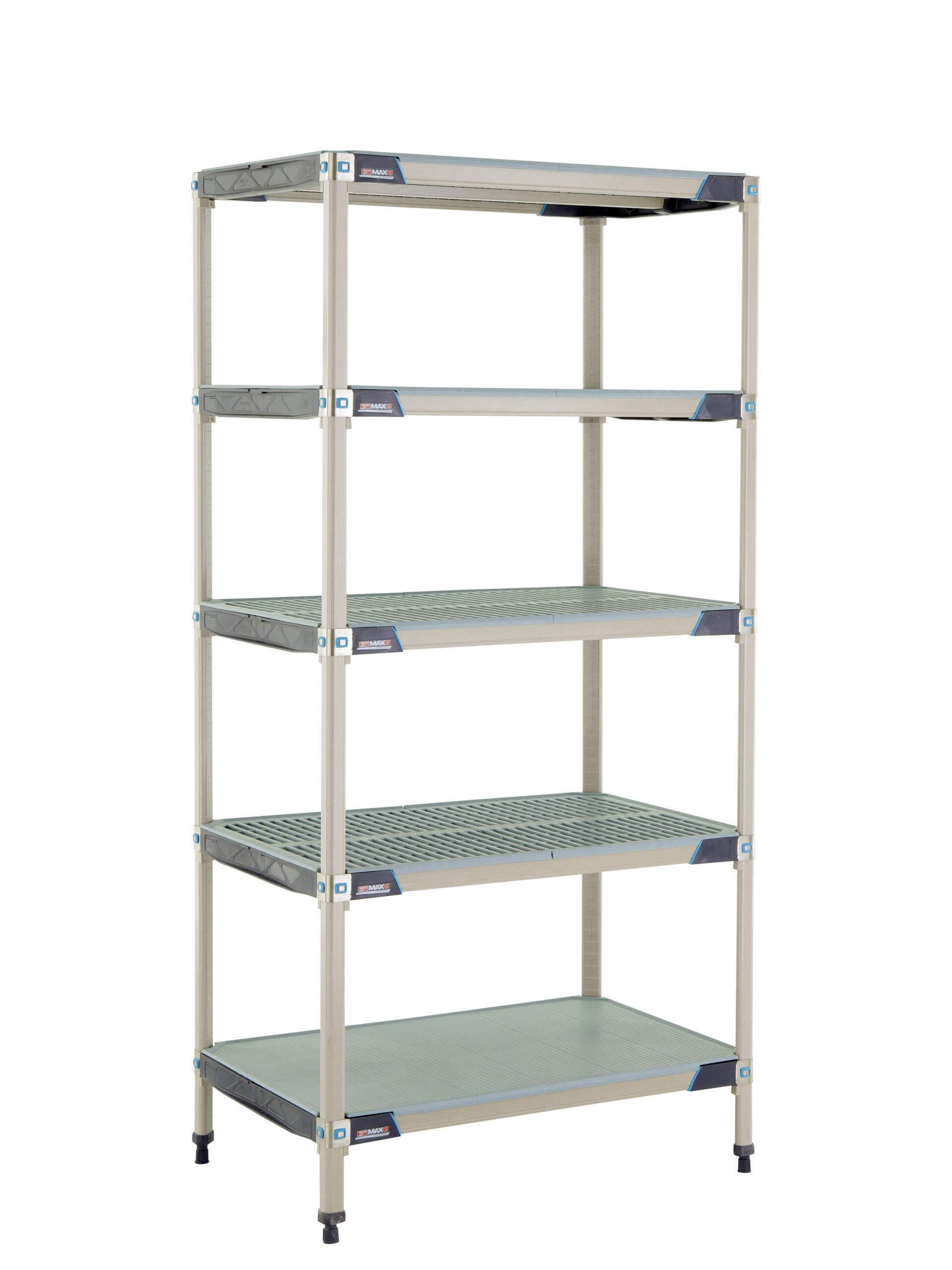 The MetroMax i 5-Shelf Industrial Shelving Unit is a versatile and durable storage solution perfect for laboratories, warehouses, and commercial kitchens. Constructed from advanced polymers and Type 304 stainless steel, this shelving system offers exceptional corrosion resistance and a lifetime warranty against rust. Featuring a solid bottom shelf for containing spills and smaller items, along with four open-grid shelves for optimal air circulation, this unit ensures a clean and organized environment. With Microban antimicrobial protection built into the posts and shelf mats, it inhibits the growth of bacteria, mold, and mildew. Easy to assemble and adjust in 1-inch increments, the MetroMax i provides a customizable and reliable shelving solution for any demanding environment. Ideal for storing heavy items, each shelf can hold up to 1,000 lbs, with a total unit capacity of 2,000 lbs. Contact us for bulk orders and free shipping options.