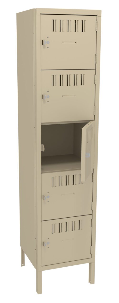 Tennsco 15″ W x 15″D One-Wide Assembled Five-Tier Box Locker with Legs, Sand