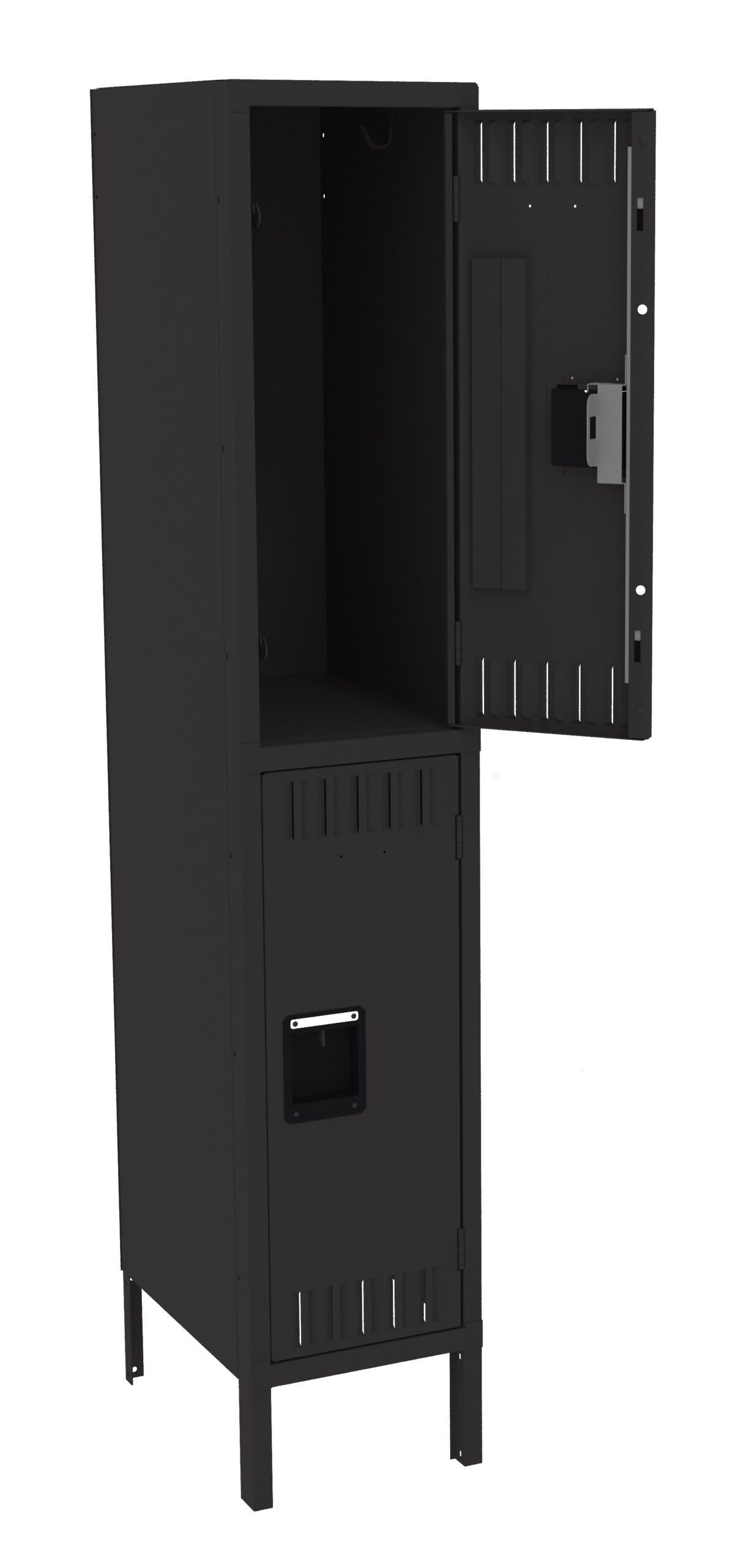 Tennsco 12″ W One-Wide Assembled Double Tier Locker With Legs, Black – TO-DTS-121830-1-BLK