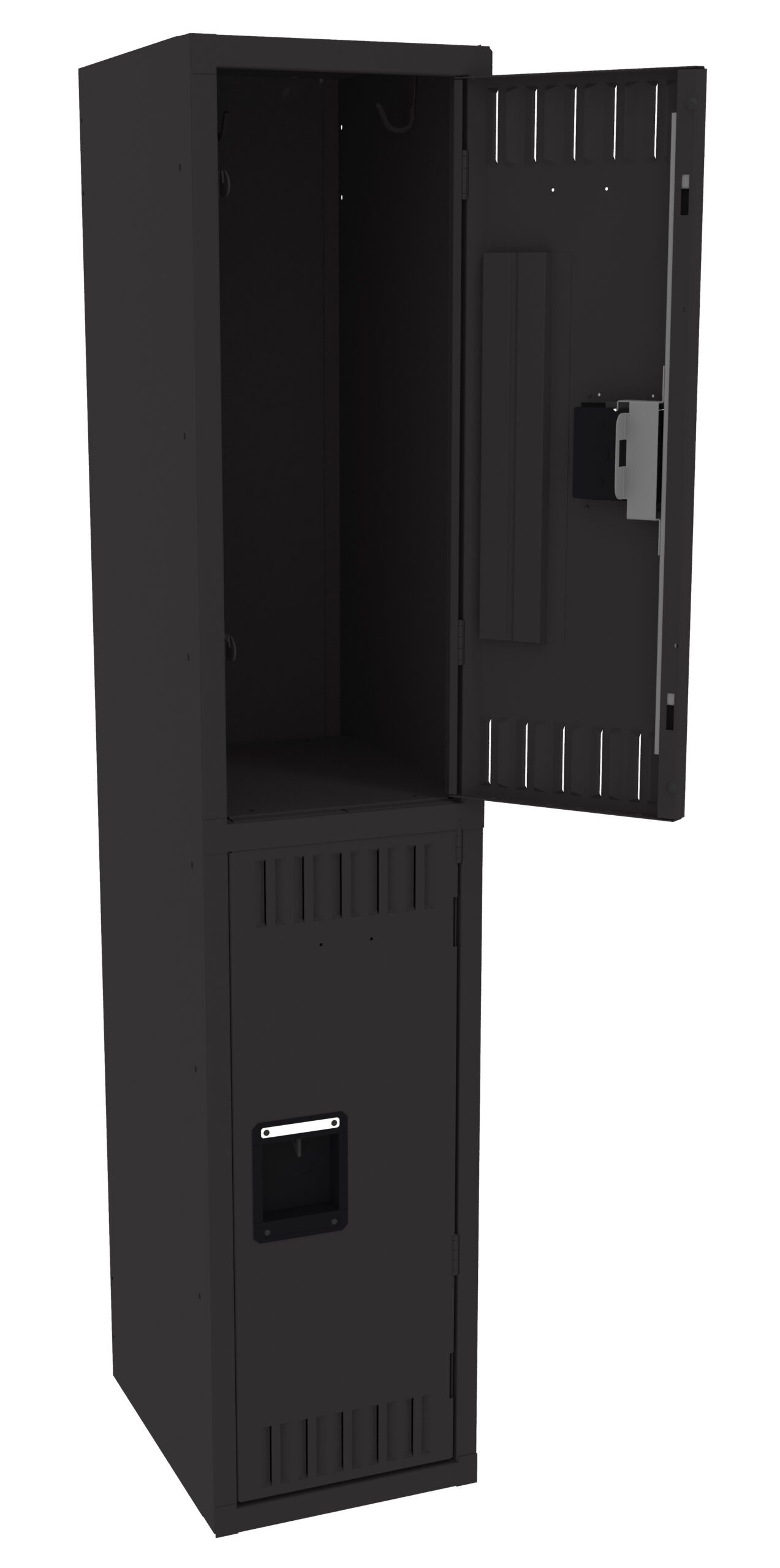 Tennsco 12″ W One-Wide Assembled Double Tier Locker Without Legs, Black – TO-DTS-121530-A-BLK