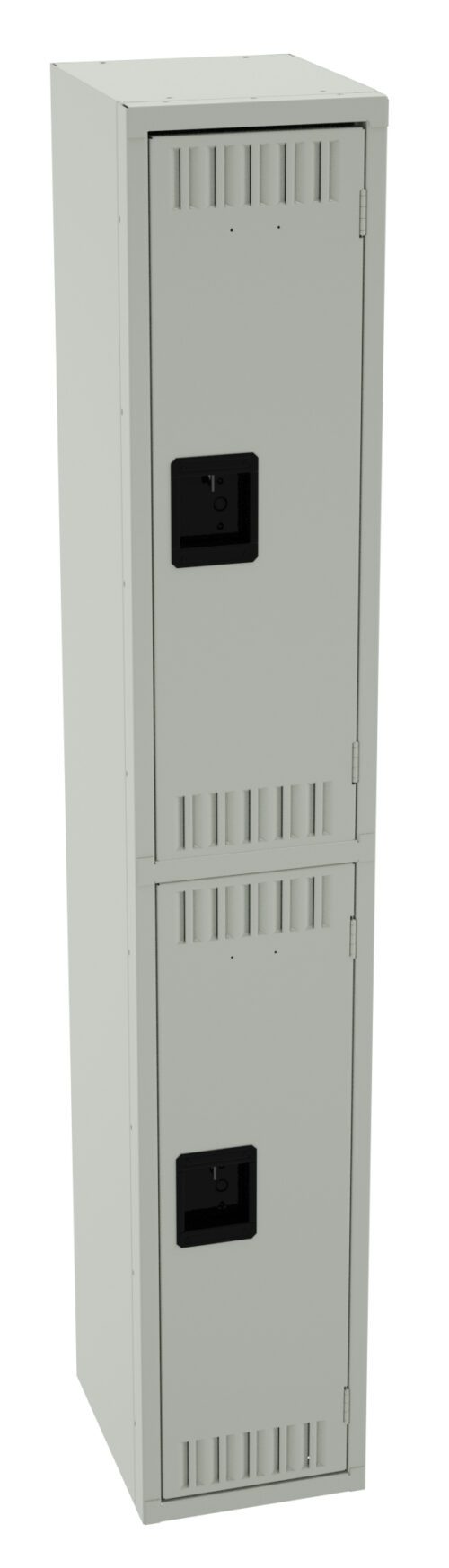 Double Tier lockers feature two openings per locker, giving you twice as many lockers in the same space as a single tier locker. Three coat hooks per opening. Positive 2 point locking system on doors. Flush louvers for ventilation. Door stiffeners add rigidity.