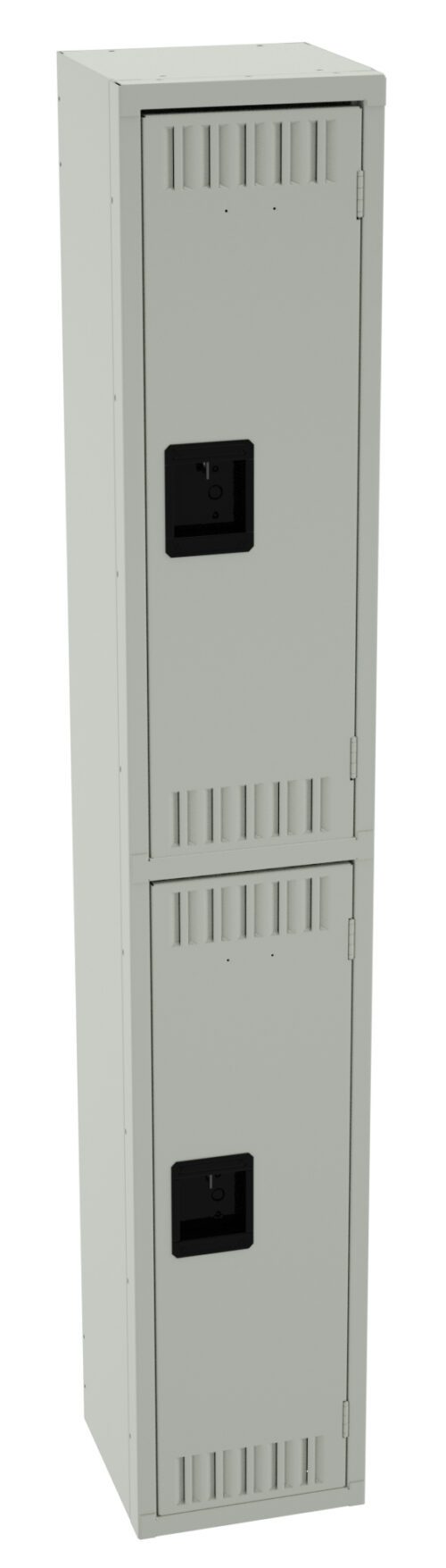 Double Tier lockers feature two openings per locker, giving you twice as many lockers in the same space as a single tier locker. Three coat hooks per opening. Positive 2 point locking system on doors. Flush louvers for ventilation. Door stiffeners add rigidity.