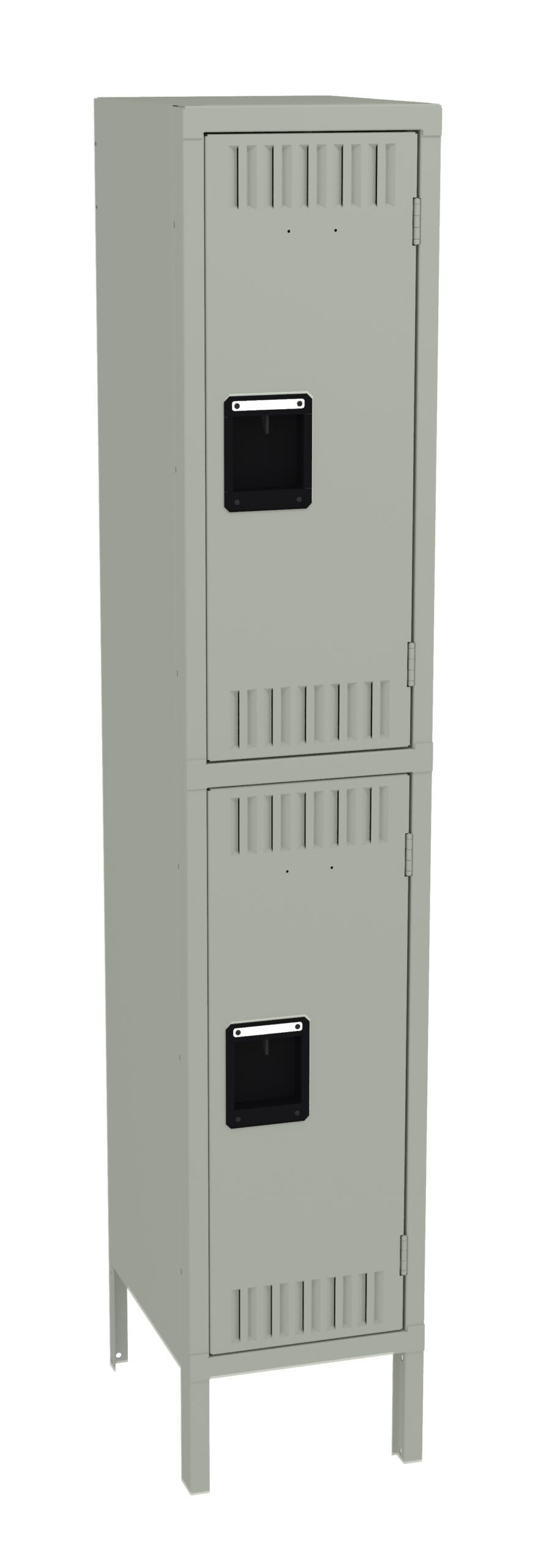 Tennsco 12″ W One-Wide Unassembled Double Tier Locker With Legs, Light Grey – TO-DTK-121530-1-LGY