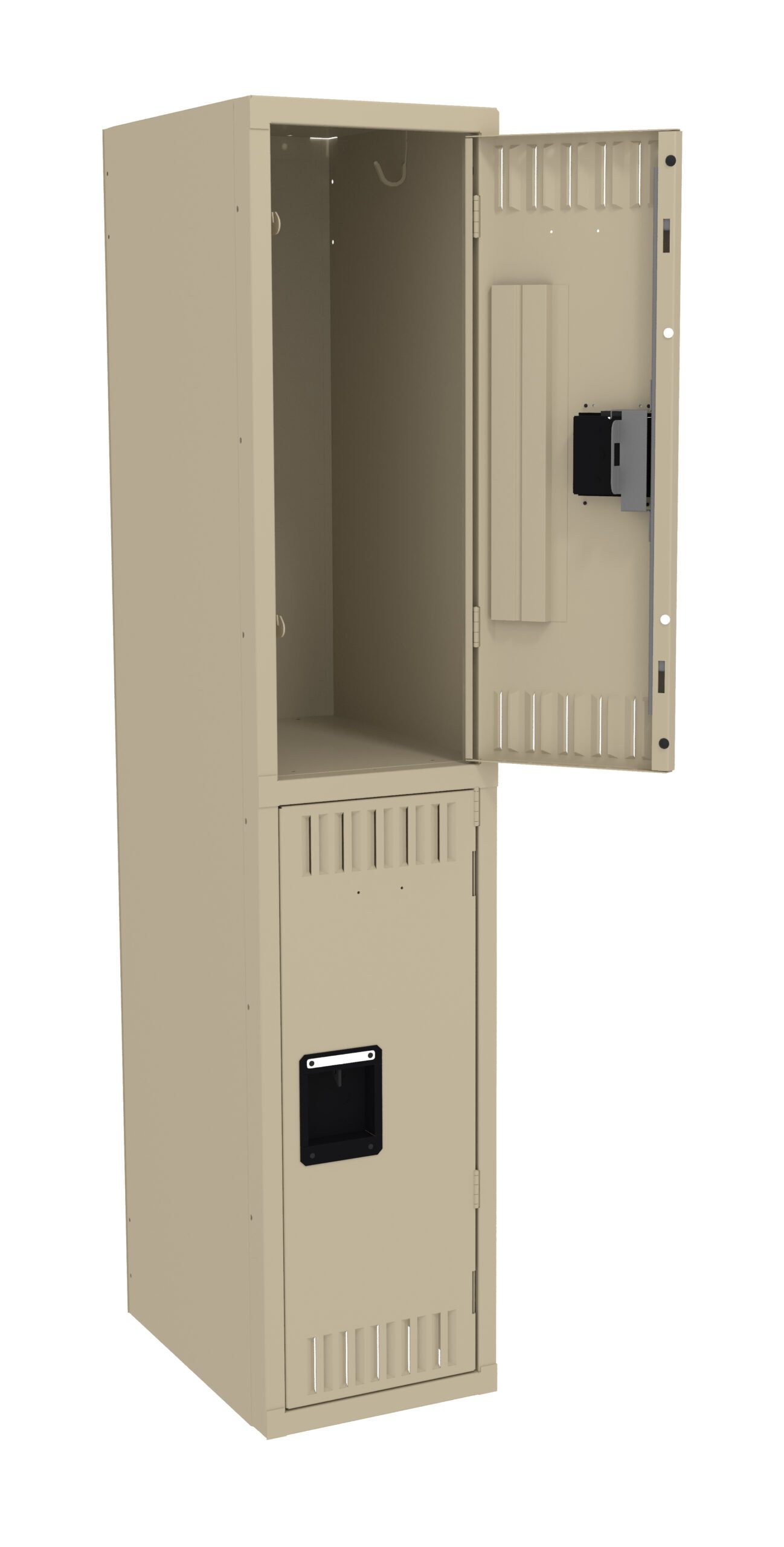 Tennsco 12″ W One-Wide Unassembled Double Tier Locker Without Legs, Sand – TO-DTK-121830-A-SND