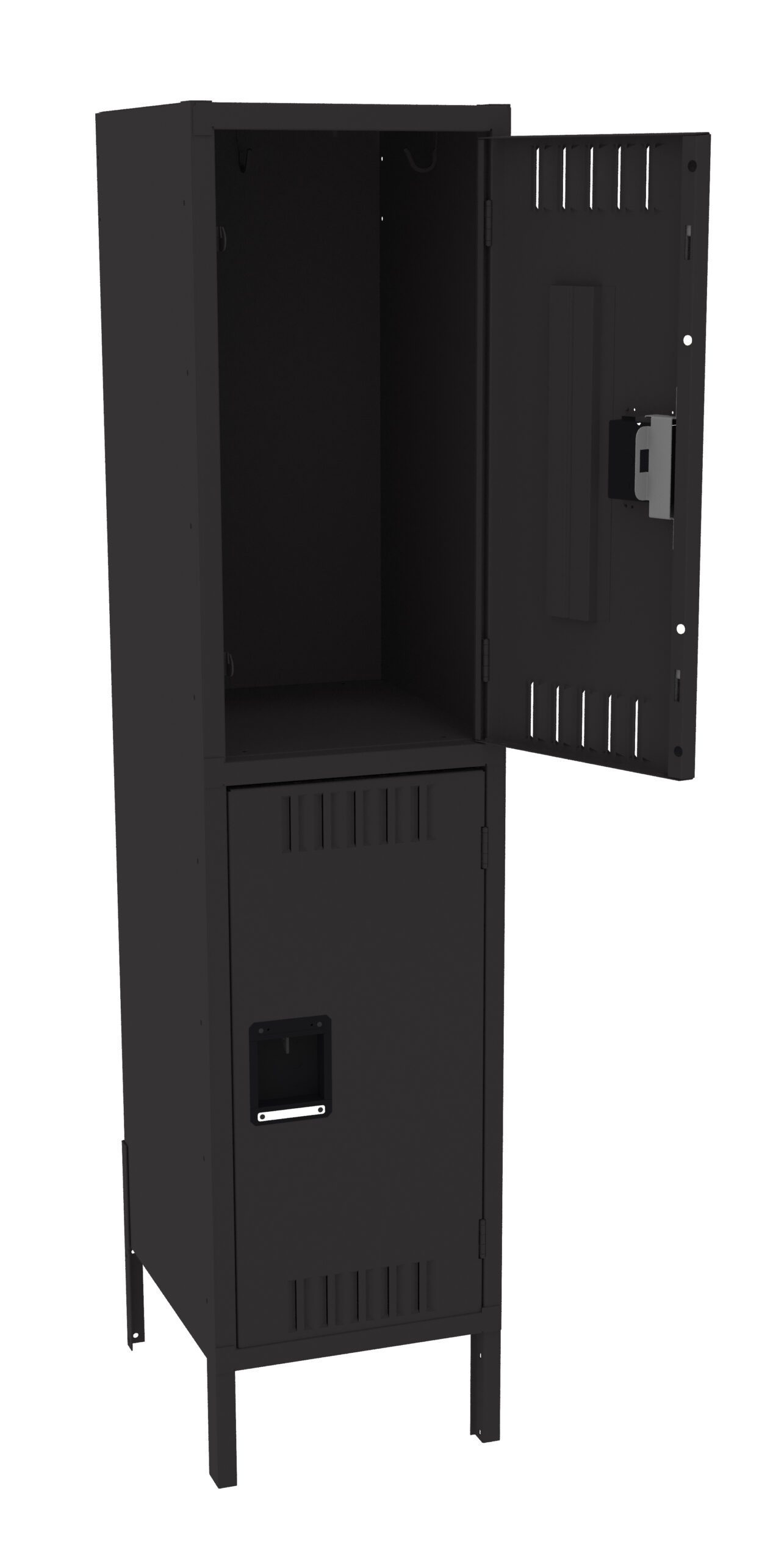 Tennsco 15″ W One-Wide Assembled Double Tier Locker With Legs, Black – TO-DTS-151830-1-BLK