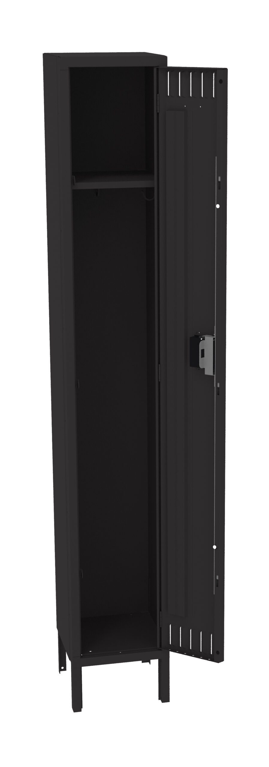 Single Tier Lockers are our most popular general purpose locker, ideal for factories, schools, hospitals. Three coat hooks per opening. Positive 3 point locking system on doors. Flush louvers for ventilation. Door stiffeners add rigidity.