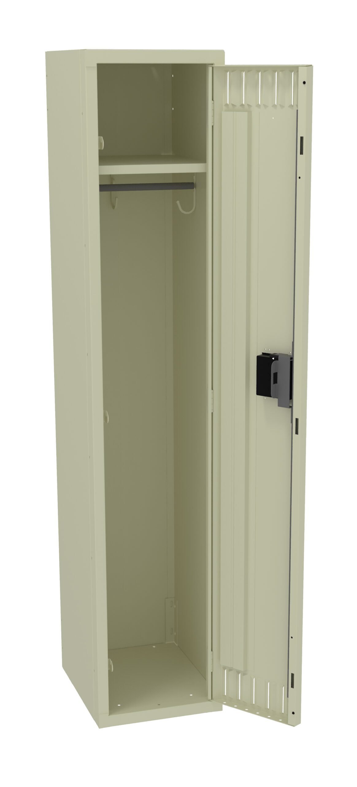 Single Tier Lockers are our most popular general purpose locker, ideal for factories, schools, hospitals. Three coat hooks per opening. Positive 3 point locking system on doors. Flush louvers for ventilation. Door stiffeners add rigidity.