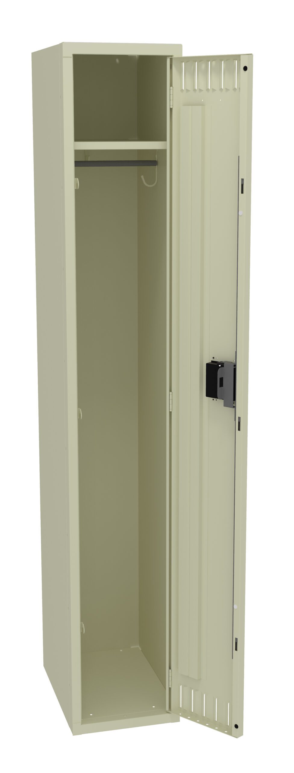 Single Tier Lockers are our most popular general purpose locker, ideal for factories, schools, hospitals. Three coat hooks per opening. Positive 3 point locking system on doors. Flush louvers for ventilation. Door stiffeners add rigidity.