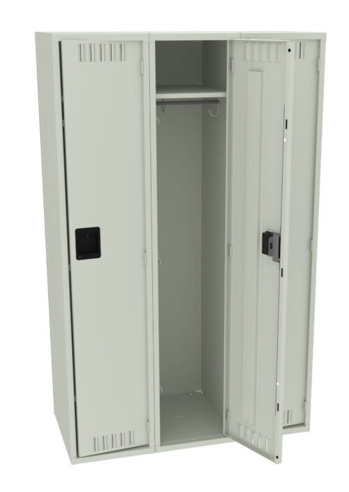 Single Tier Lockers are our most popular general purpose locker, ideal for factories, schools, hospitals. Three coat hooks per opening. Positive 3 point locking system on doors. Flush louvers for ventilation. Door stiffeners add rigidity.
