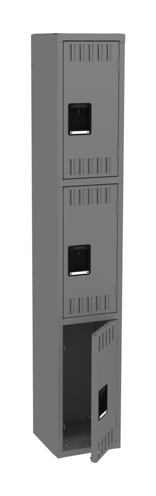 Tennsco 12″ W One-Wide Assembled Triple Tier Locker Without Legs, Medium Grey – TO-TTS-121224-A-MGY