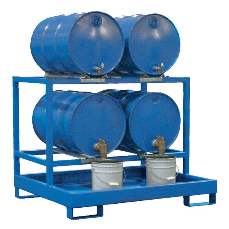 A horizontal retention basin makes storing and draining drums that much more efficient. A steel design can withstand a variety of environment including those that are extremely hot. Fork pockets are included to for simple lifting and maneuvering. The built-in horizontal drum cradles are sloped for time saving during draining.