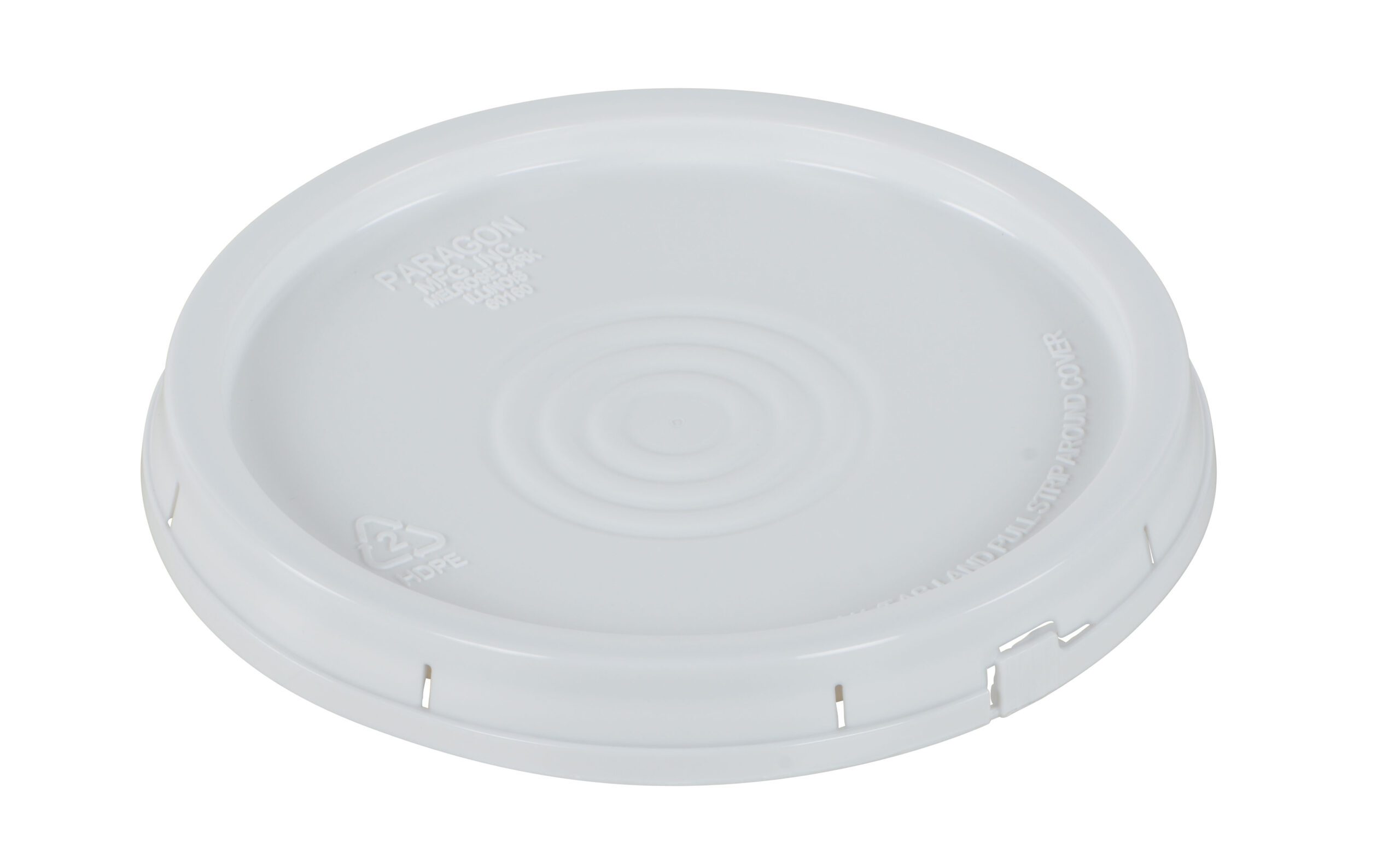 Plastic Lid for use with plastic pail. This plastic lid is constructed of one-hundred percent (100%) prime virgin high density polyethylene (High-Density Polyethylene (HDPE)) and comply with FDA regulations, with a tear tab. Suitable for shipping according to D.O.T. standards.