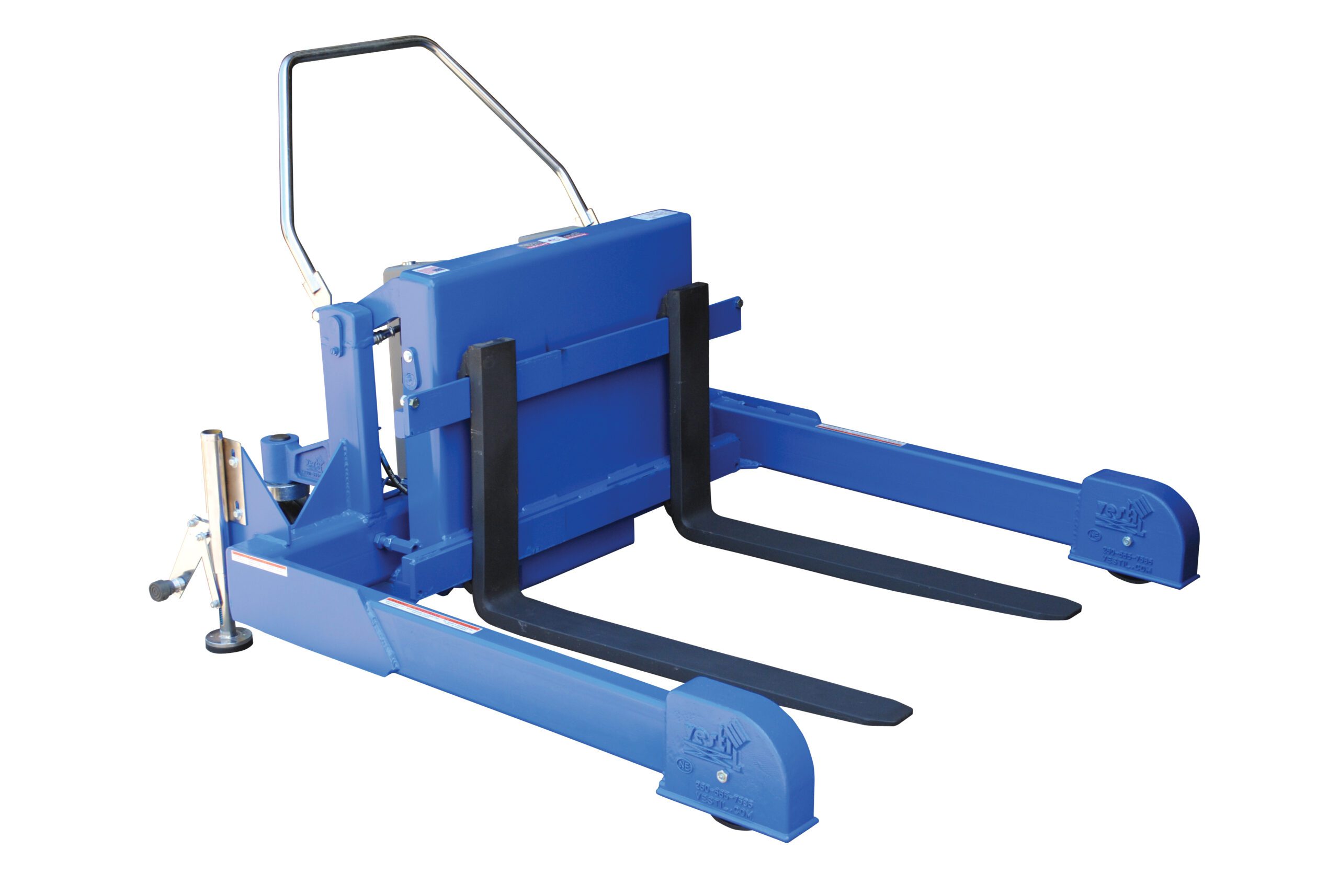 The Tilt Master Straddle lifts and positions filled tote boxes or baskets without the need of a fork truck or lift table using the newly designed heavy-duty tilt master. The tilter will function as transporters by moving completed products from work station to work station without waiting for a fork truck. It features a folding ergonomic handle for quick and easy maneuverability. This Lift has a thin profile to allow the user to get as close to the load as possible. It also has a standard floor lock and rolls easily on the phenolic steering wheels. Lift is designed to be used with virtually any kind of container or pallet. The unit is powered by a DC electric motor that includes an on-board battery charger, battery charge indicator and comes standard with a push-button hand control on a coil cord.