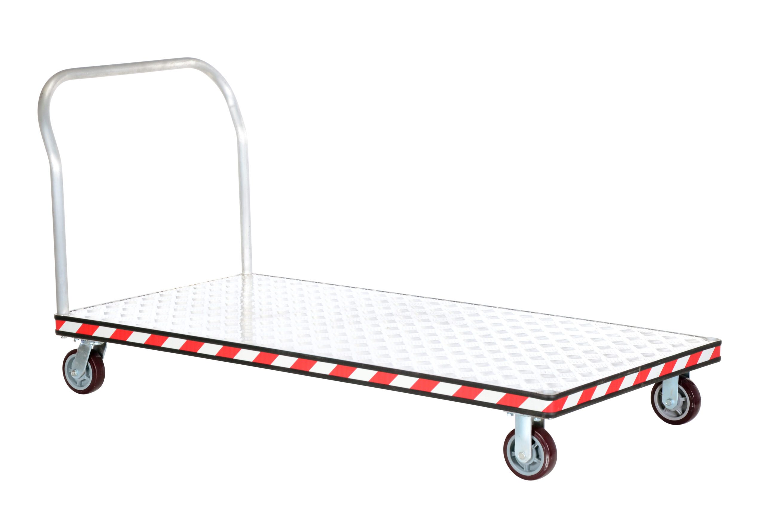 This Lightweight Aluminum Treadplate Platform Truck is constructed of all welded aluminum. The rounded-edge platform protects walls from damage during transit. Includes one removable high-polished steel handle (handle design may vary from what is shown). Ideal for commercial and warehouse areas.