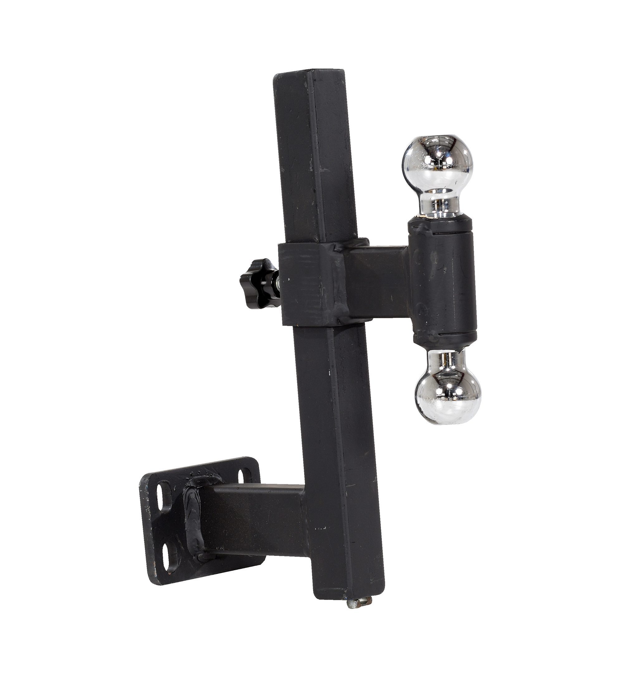 A Double ball hitch gives the users needed options. With two different sizes, the user has the ability to switch to the ball that best fits their needs. Simple to switch from size to size, ensuring safety and security of items being moved. With a modifiable height, the ball hitch can be maneuvered to a precise connecting point. Predrilled holes in mounting plate.