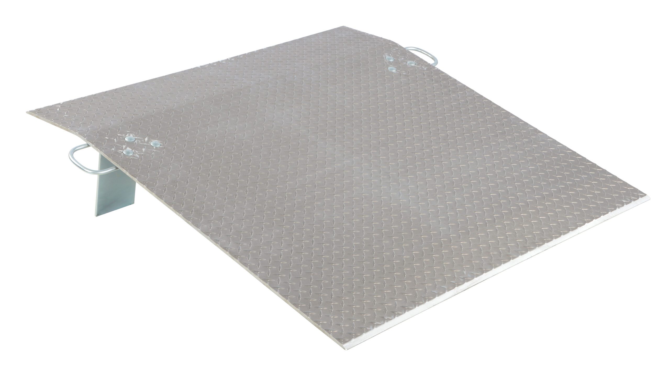 The Aluminum Economizer Dockplate is an economical way to speed up truck loading and unloading. Spans the opening between dock and trailer to allow pallet or hand trucks along with traffic to safely move in and out of the trailer. The dockplate is constructed of high strength, non-skid aluminum alloy tread plate. The lightweight design with bolt on zinc plated legs and handles on each side makes portability easy. Locking legs for OSHA Compliance. Not for use with fork trucks.