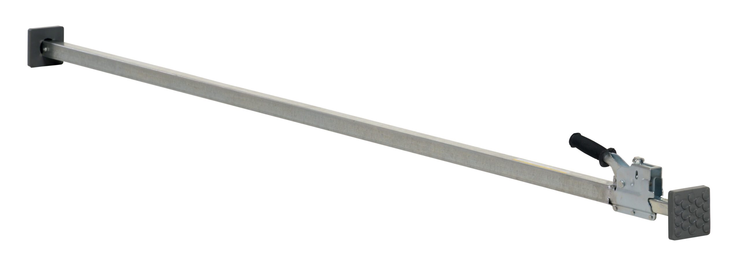 The One Piece Cargo Bar keeps trailer contents in place to eliminate damaged goods. It has a simple mechanical lock that will not vibrate loose. The cargo bar is constructed of square tubing with a wall construction that is lightweight yet extremely strong. Square articulating steel end plates feature pads for positive gripping action, end plates and fit between trailer walls.