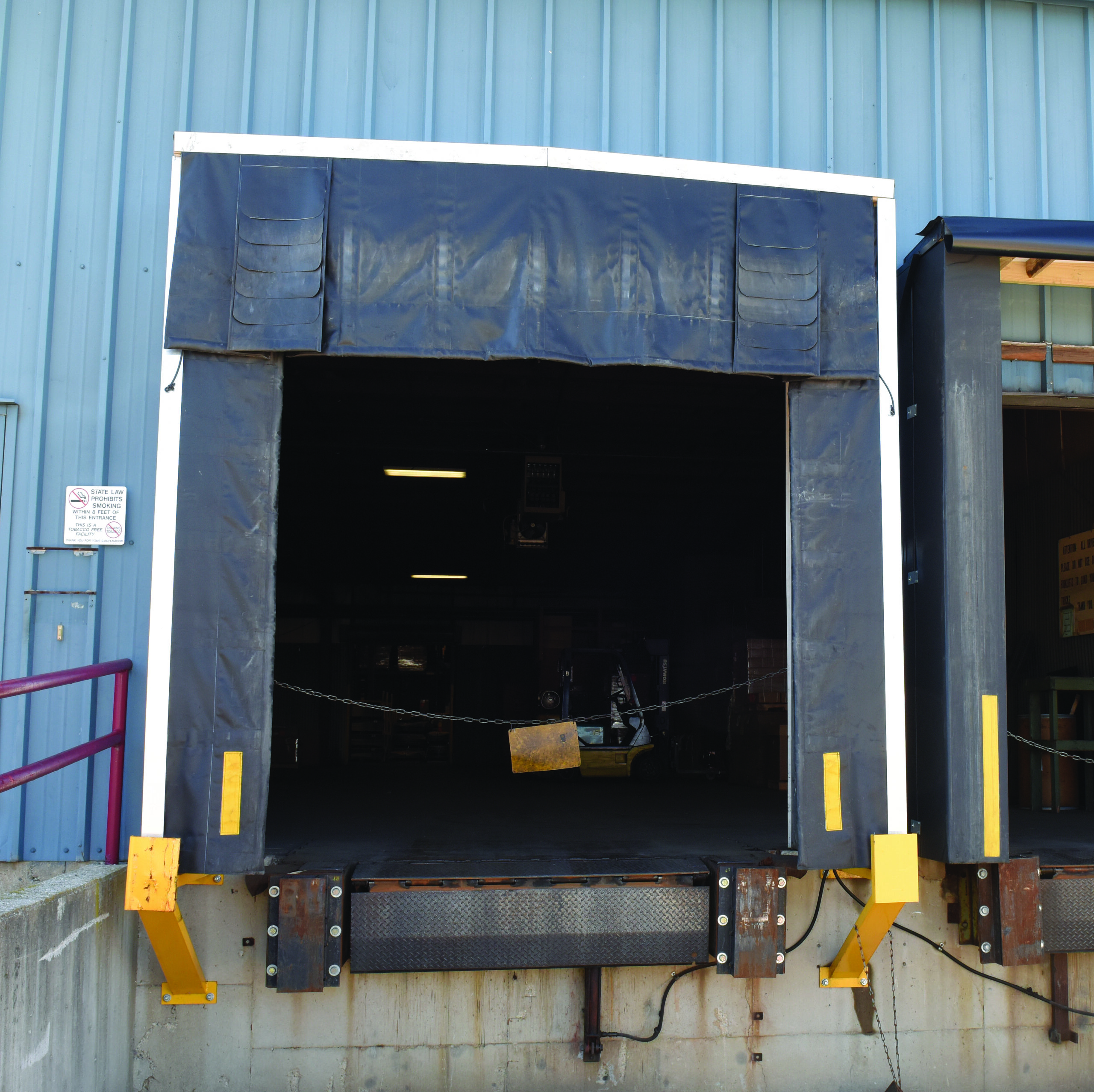 The Dock Shelter is used with doors up to one-hundred twenty (120) inch width by one-hundred twenty (120) inch height. The dock shelter reduces oversized doors to match truck openings. The long wear fabric is highly resistant to abrasion and tearing. Fiberglass staves are sewn into the flaps. Seal is formed along the fronts and top of trailer when the vertical and top panels are pushed inward by the trailer. There has a recommended minimum trailer penetration for a good seal with a supporting structure that is made of wolmanized lumber. Shelter is protected by safety yellow steel guide protectors. When installed, the shelter will close the door opening down to ninety (90) inch width by ninety (90) inch height (between flaps). Includes two (2) yellow steel guide protectors and foam-filled corner pads for extra sealing action. This unit is non-returnable.