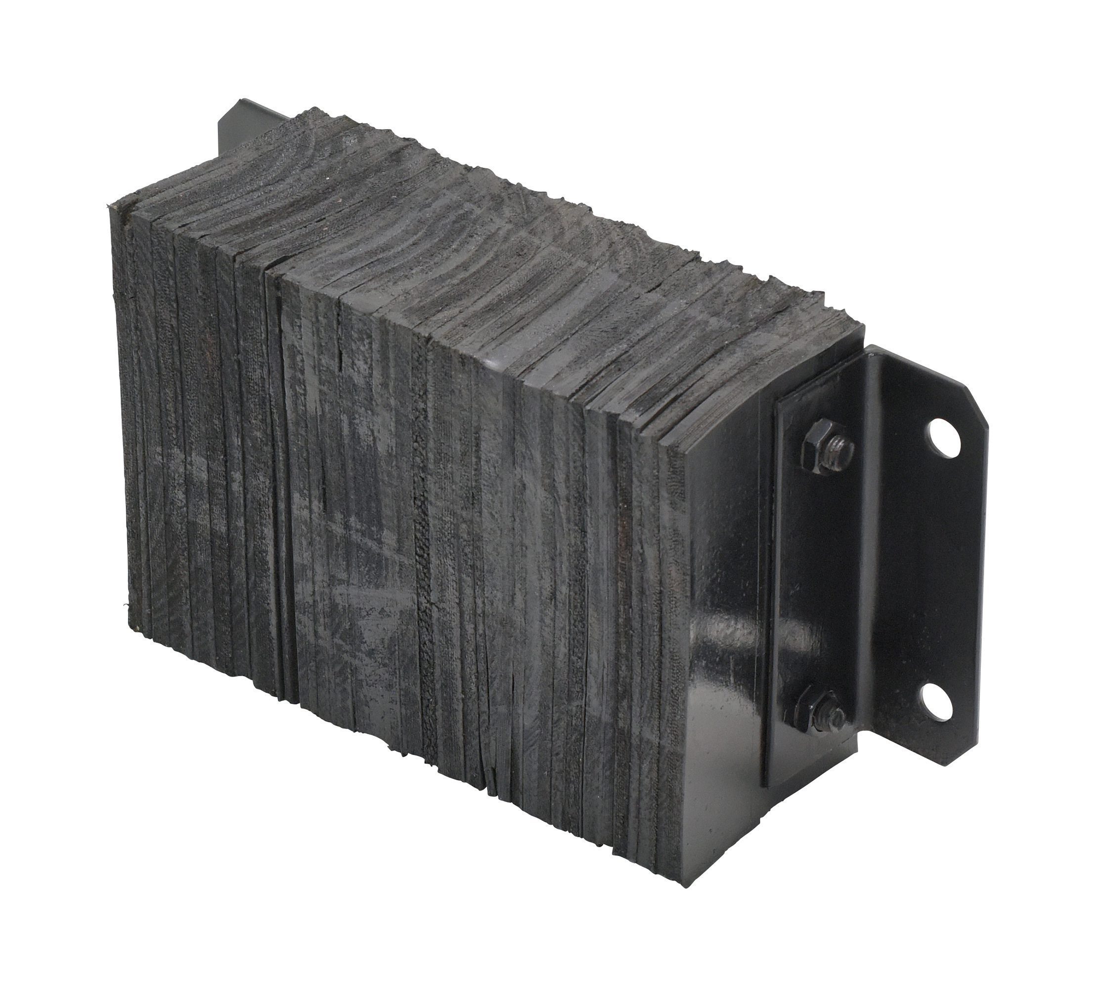 The Laminated Dock Bumper provides durable, economical protection for loading docks and trailers. This unit is constructed of fabric reinforced rubber from recycled truck tires. The pads are laminated between painted structural angles and held together with steel tie rods. Installation is quick and easy by bolting or welding the bumper to the dock. The width is bolt hole center to bolt hole center. Installation hardware sold separately.