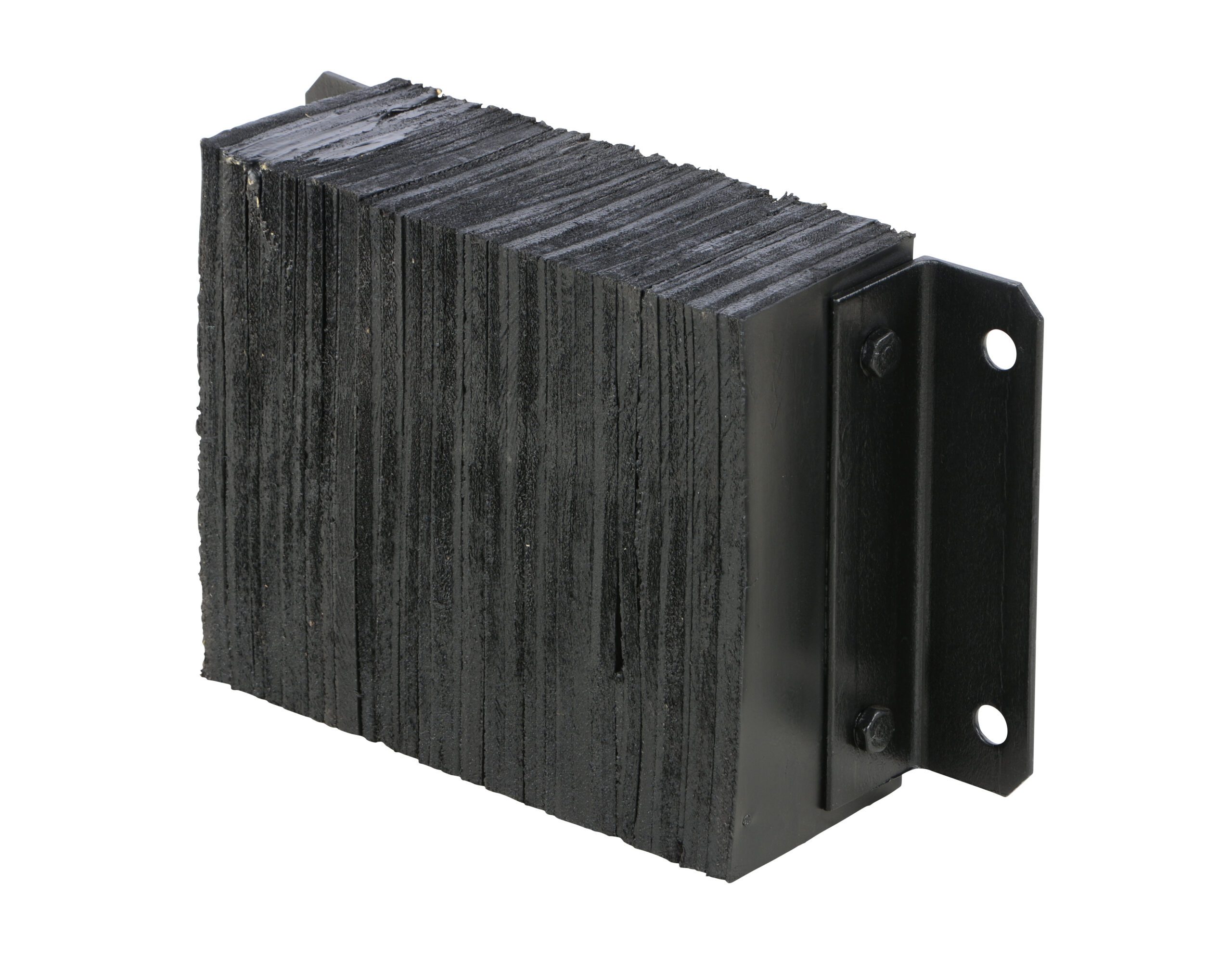 The Laminated Dock Bumper provides durable, economical protection for loading docks and trailers. This unit is constructed of fabric reinforced rubber from recycled truck tires. The pads are laminated between painted structural angles and held together with steel tie rods. Installation is quick and easy by bolting or welding the bumper to the dock. The width is bolt hole center to bolt hole center. Installation hardware sold separately.